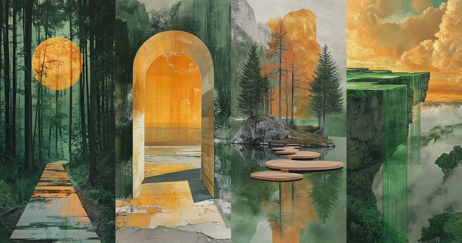 Dynamic interplay of verdant and warmth hues.