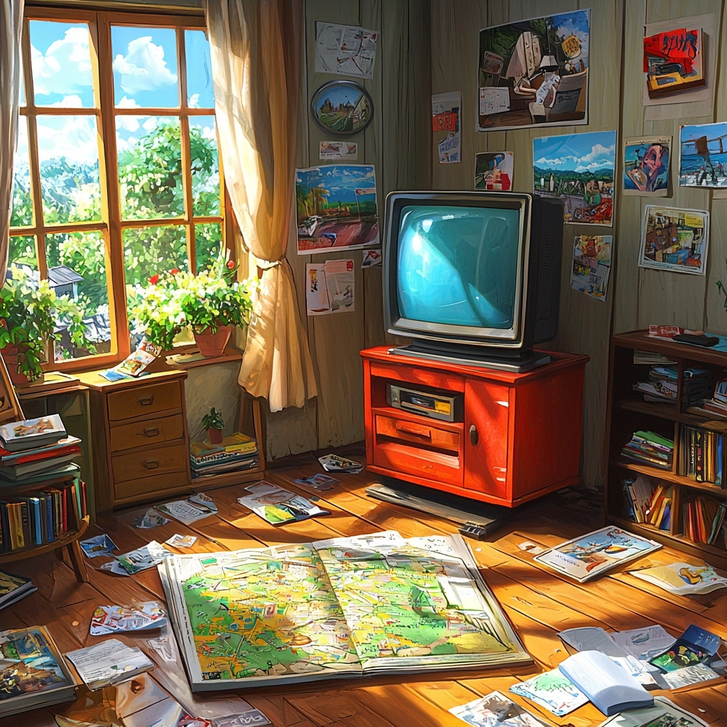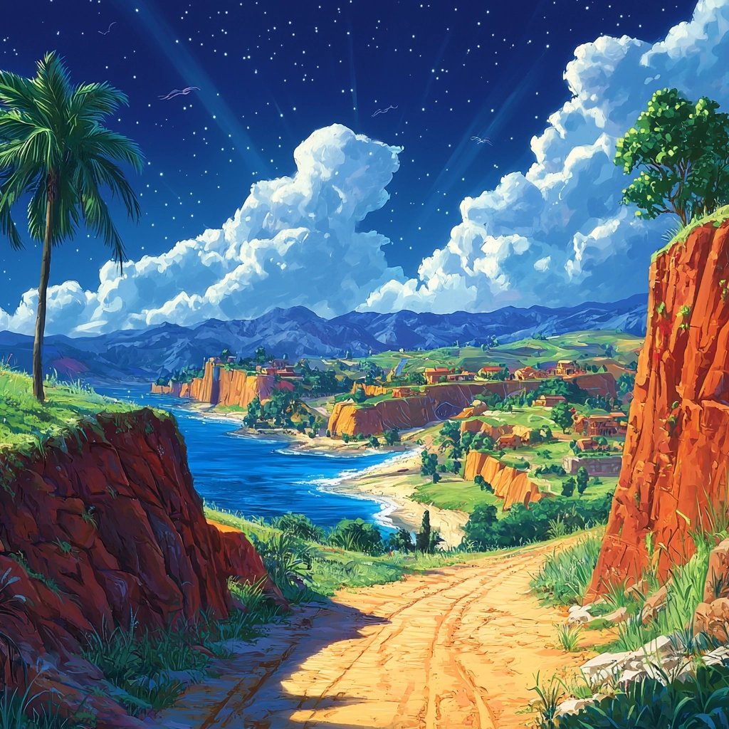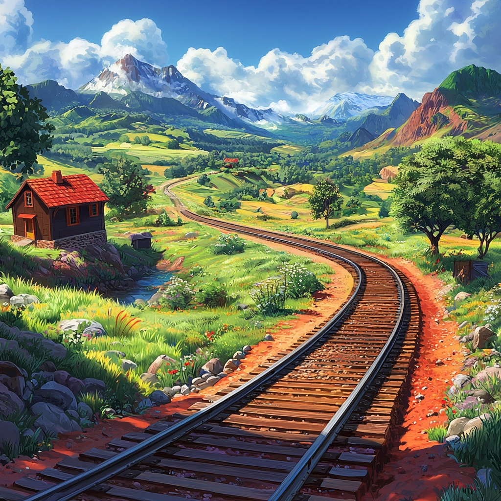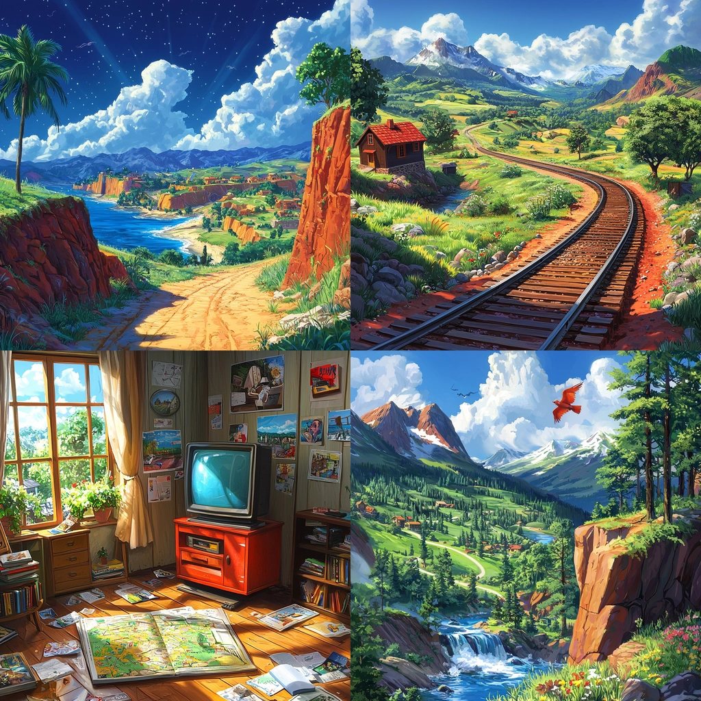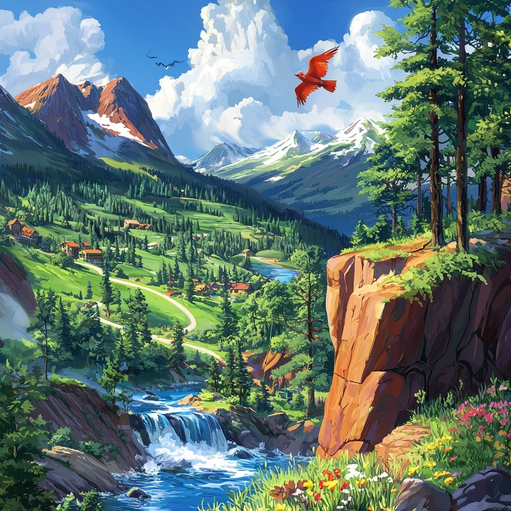 Rich and vibrant lighting enhances the depth and contrasts between shadowed and illuminated areas. The use of warm and cool tones introduces dimensionality and texture, creating a realistic sense of space and nature. The painterly texture offers a tactile quality.