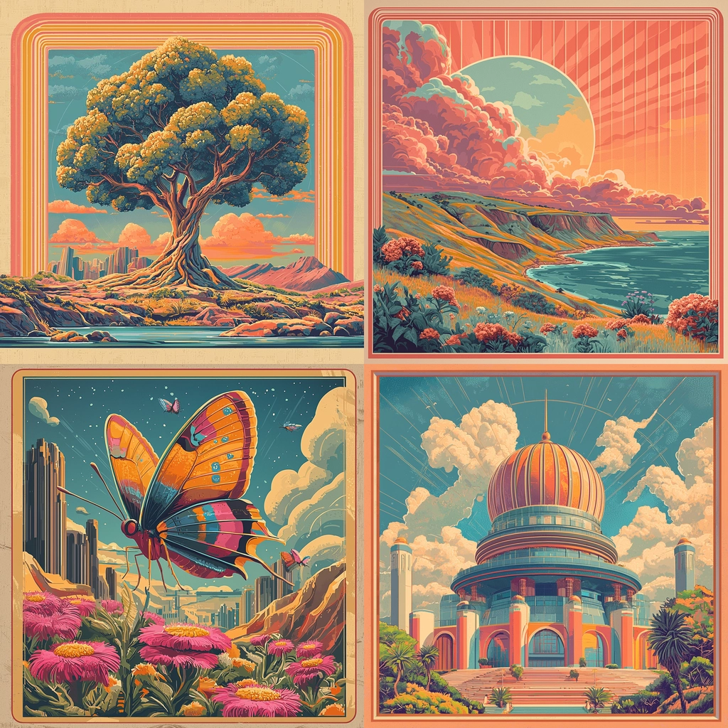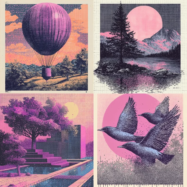 Bold colors with structured compositions evoke dynamic motions.