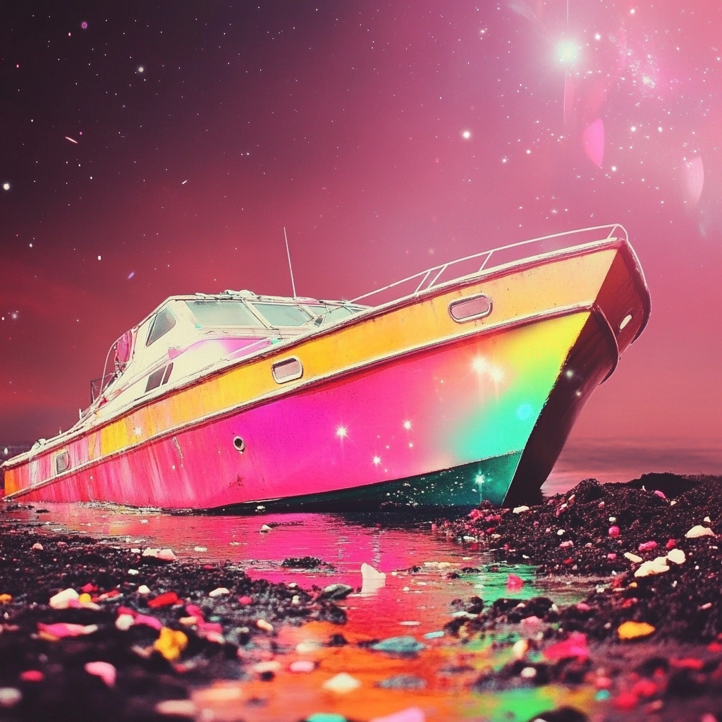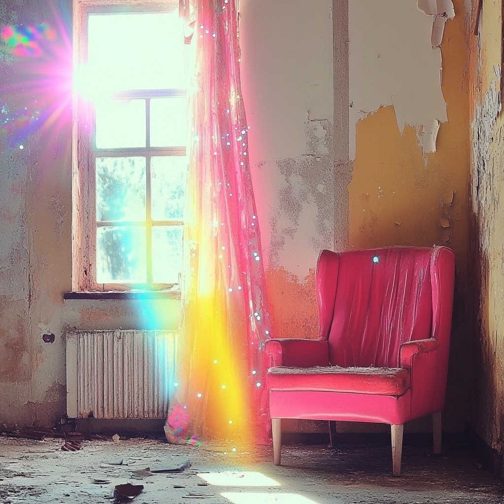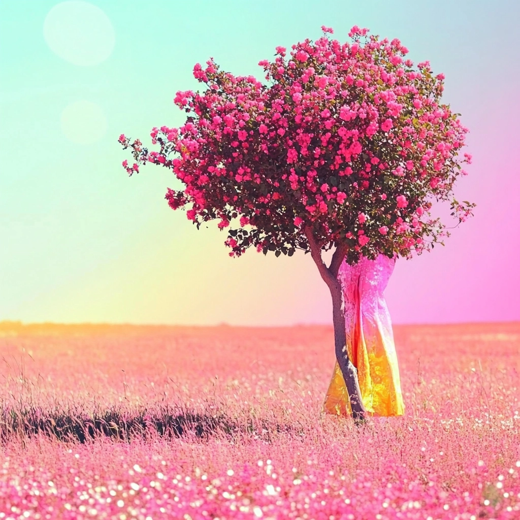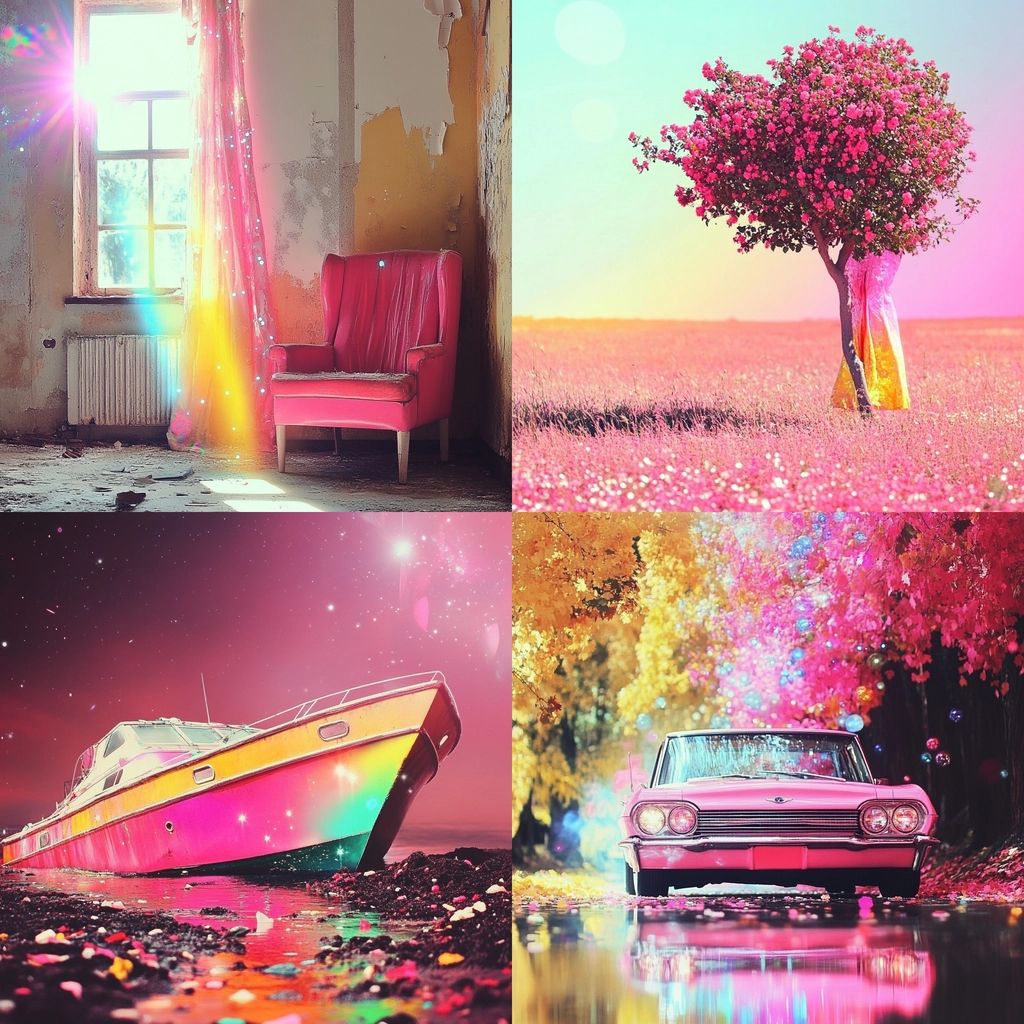 Bright lighting effects accentuate vivid color dynamics, presenting a surreal spatial orientation with smooth textures. The composition employs radiant hues to produce dynamic contrasts and attractive luminous details.