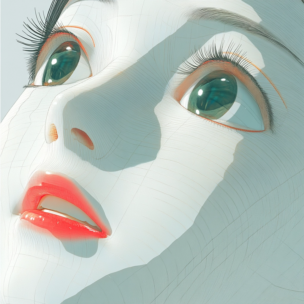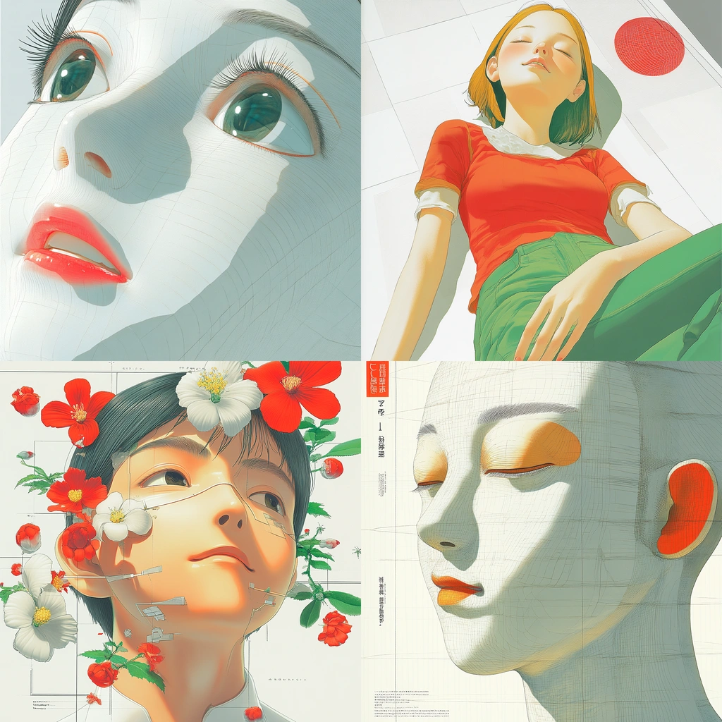 The lighting is soft yet striking, with a captivating interplay between flat and textured surfaces. The vivid colors and strategic shading create a sense of dimensionality. The backgrounds are minimalist, allowing the focused application of color to stand out.
