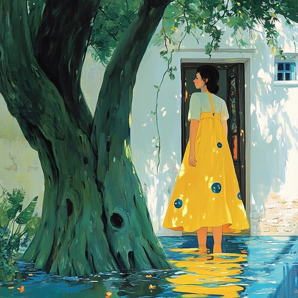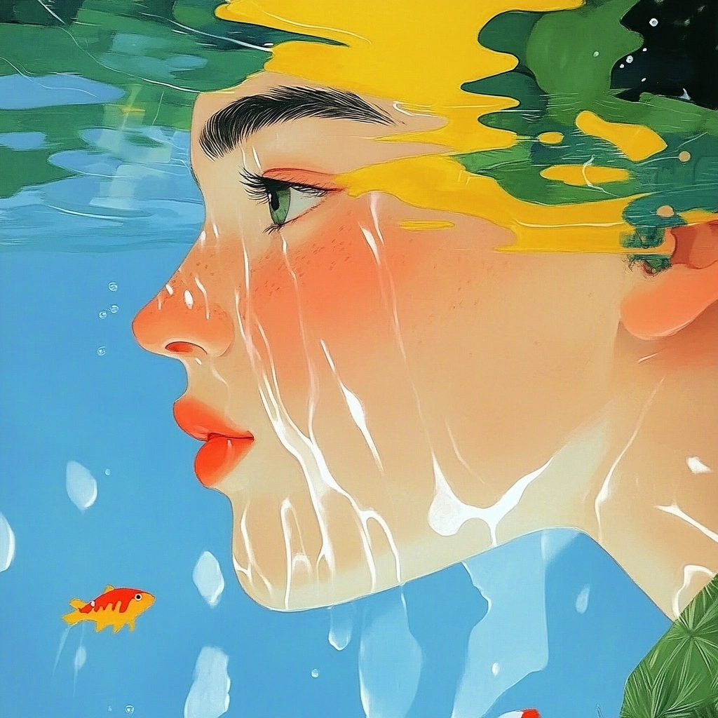Dynamic lighting creates reflections and shadows, enhancing vivid colors with a strong sense of space. Textures of nature are expressed crisply, emphasizing clarity and radiance.
