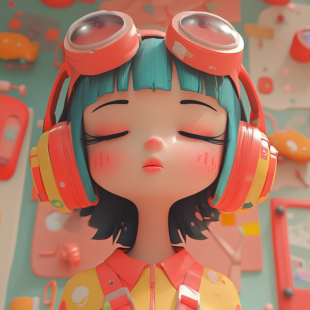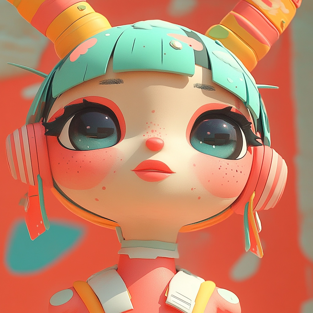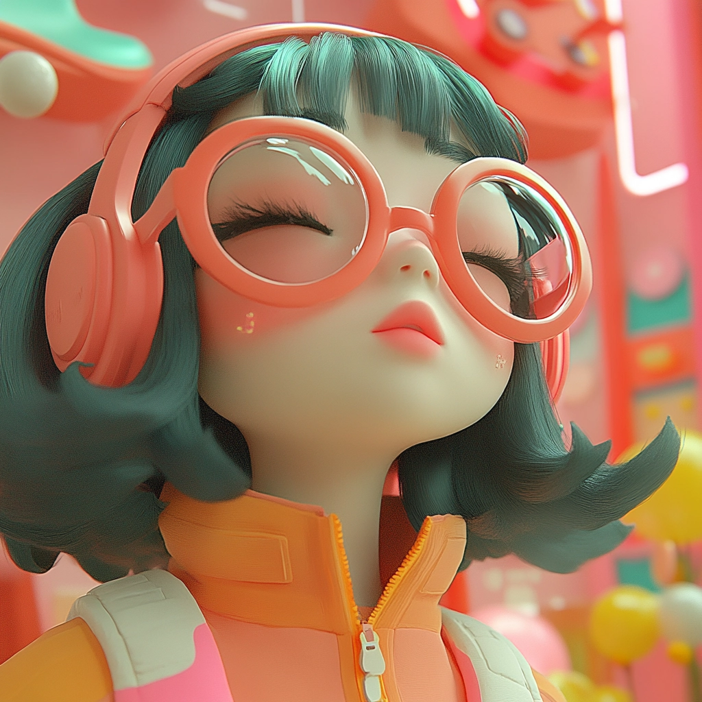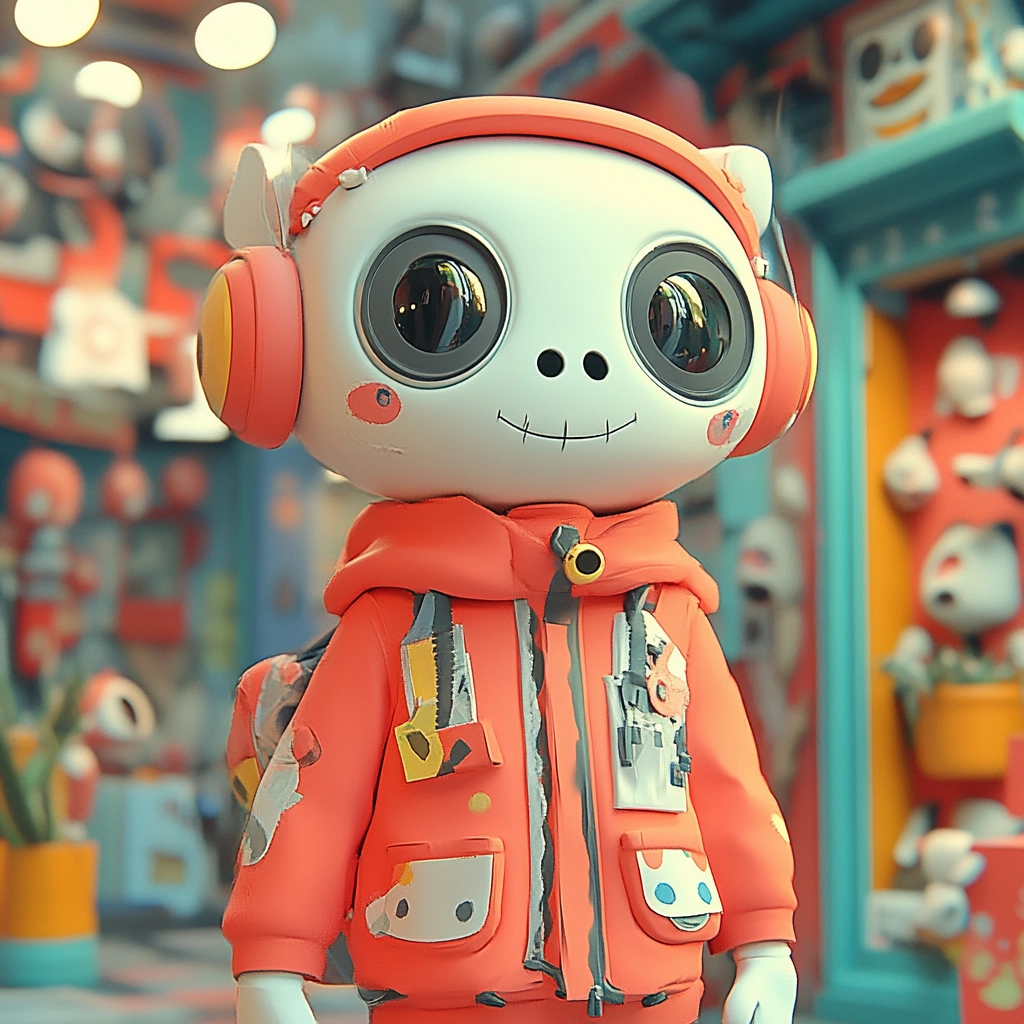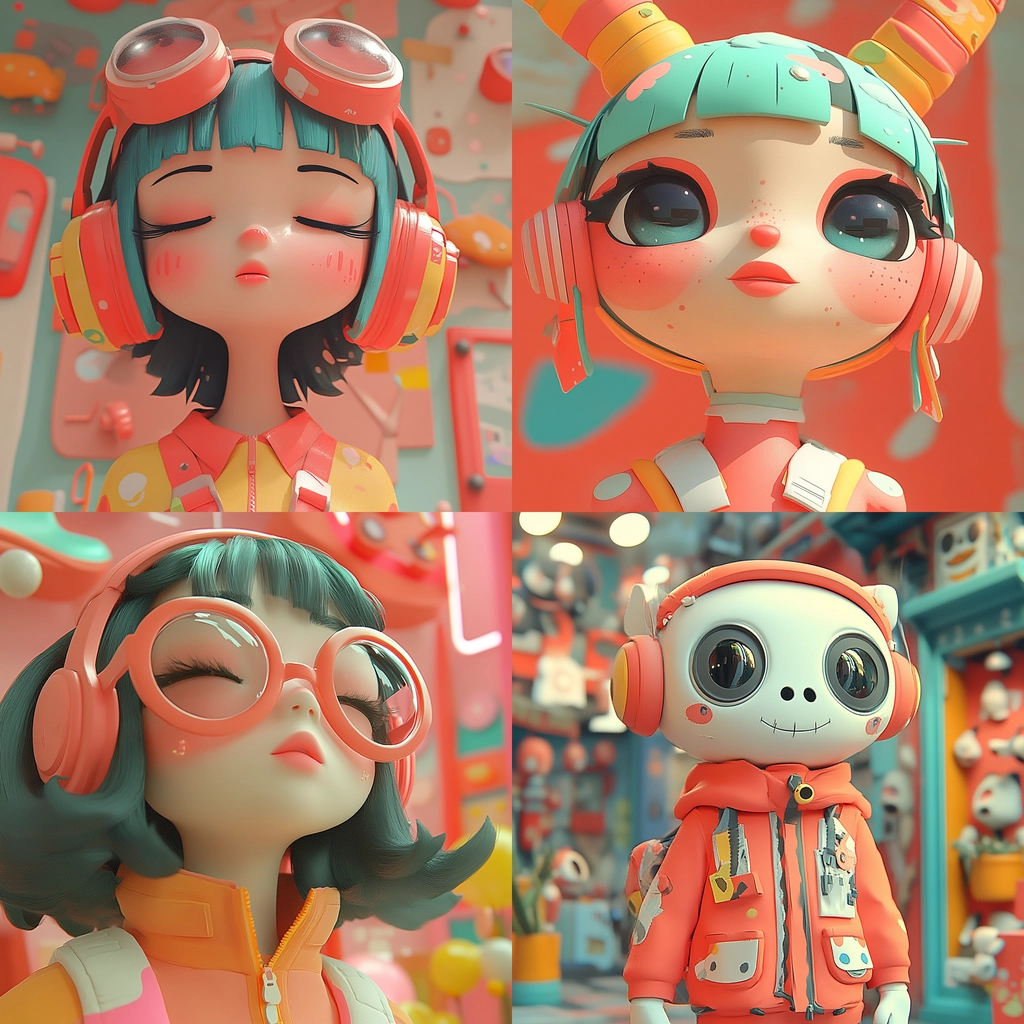 Lighting is soft with an even distribution, creating a cohesive and inviting spatial sense. The colors are gentle yet bright, enhancing the playful scenery. Texture is smooth and polished, reminiscent of high-quality animation or digital sculpting.