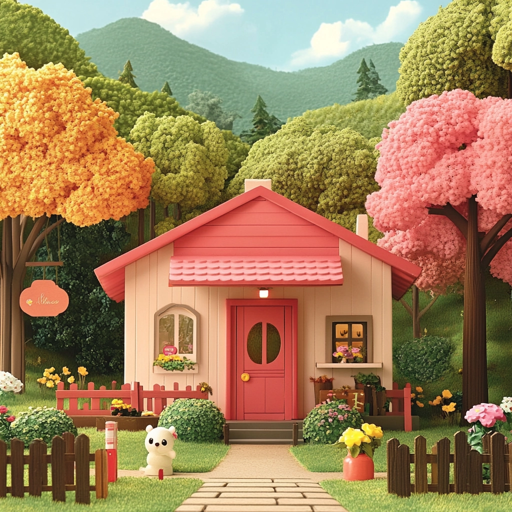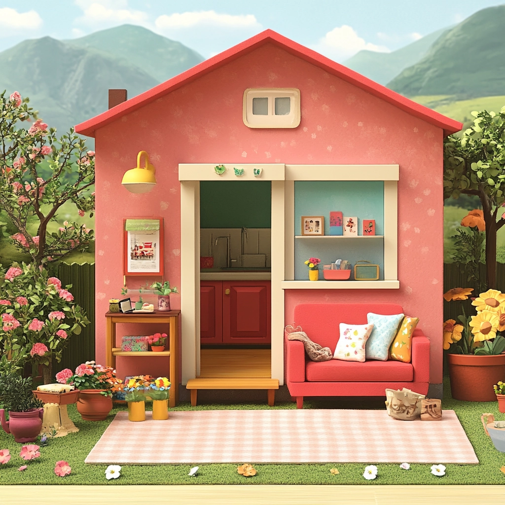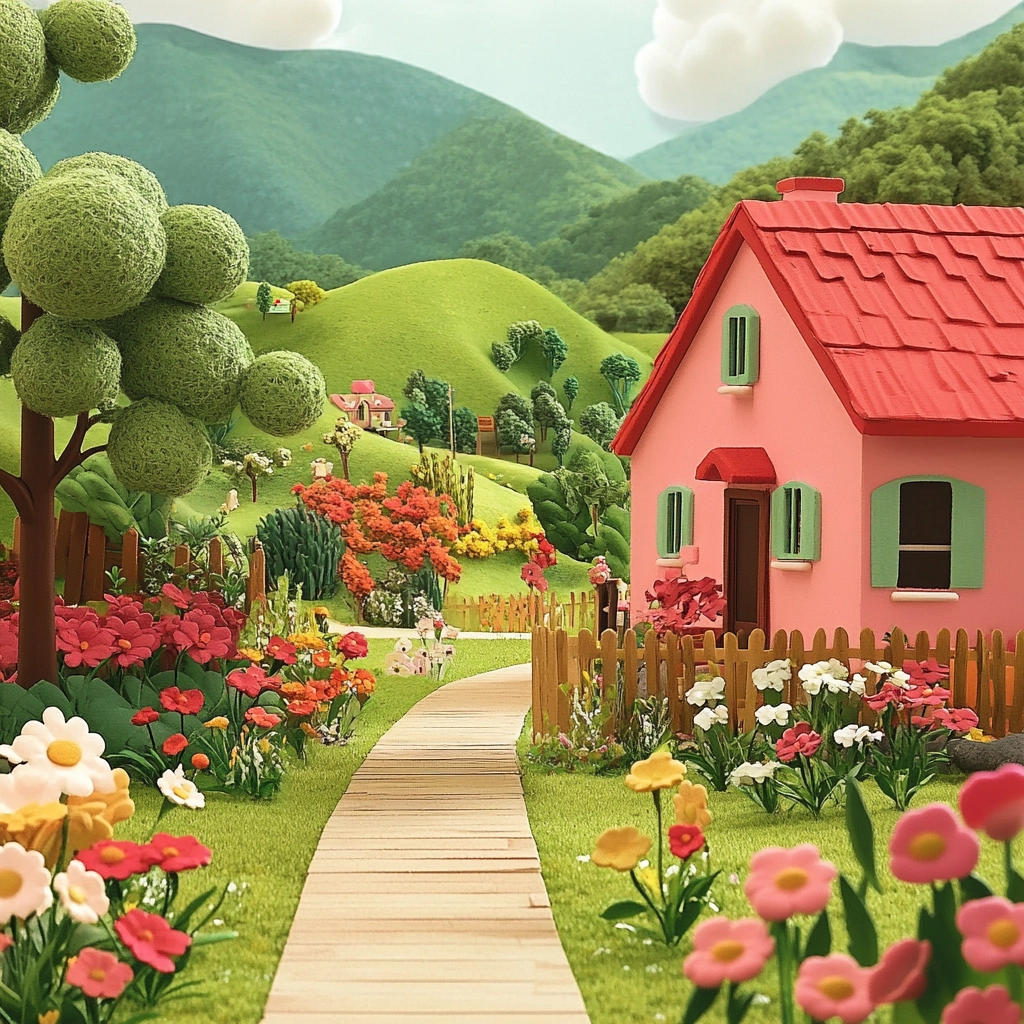 The vibrant lighting accentuates the soft, pastel color palette, creating a defined spatial depth. Texture is articulated through smooth, gradient transitions giving a sense of tangible softness.