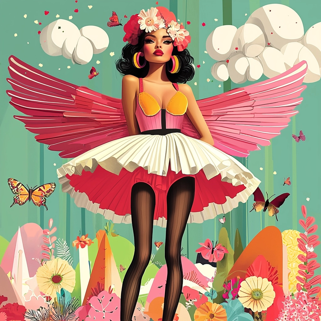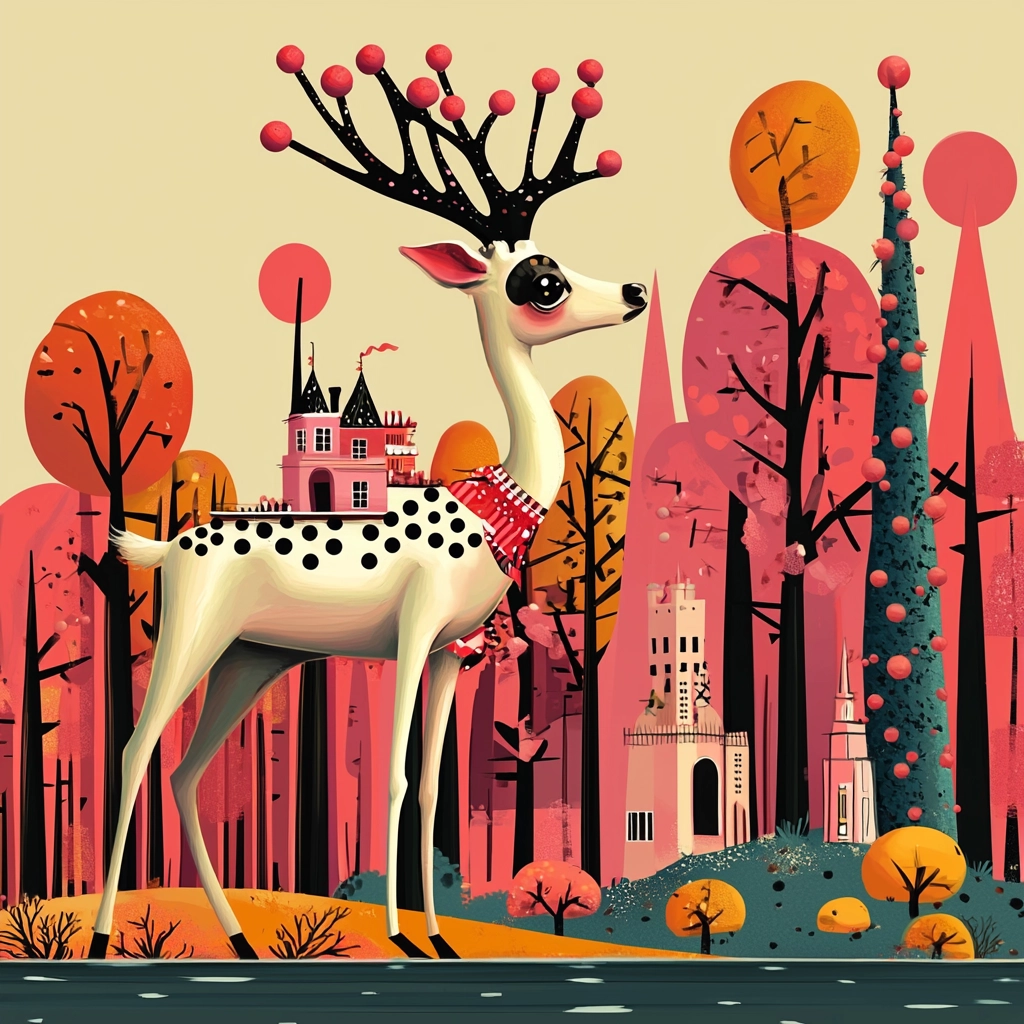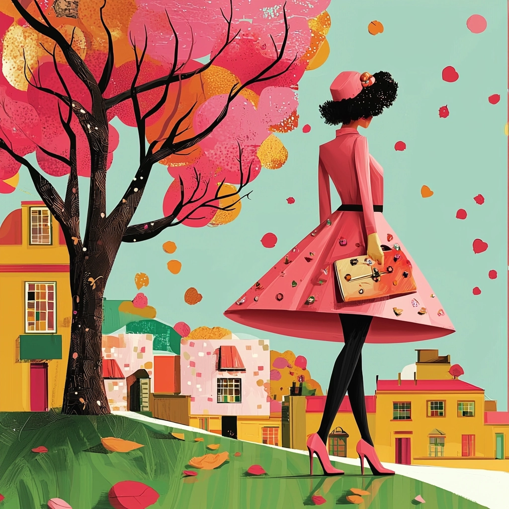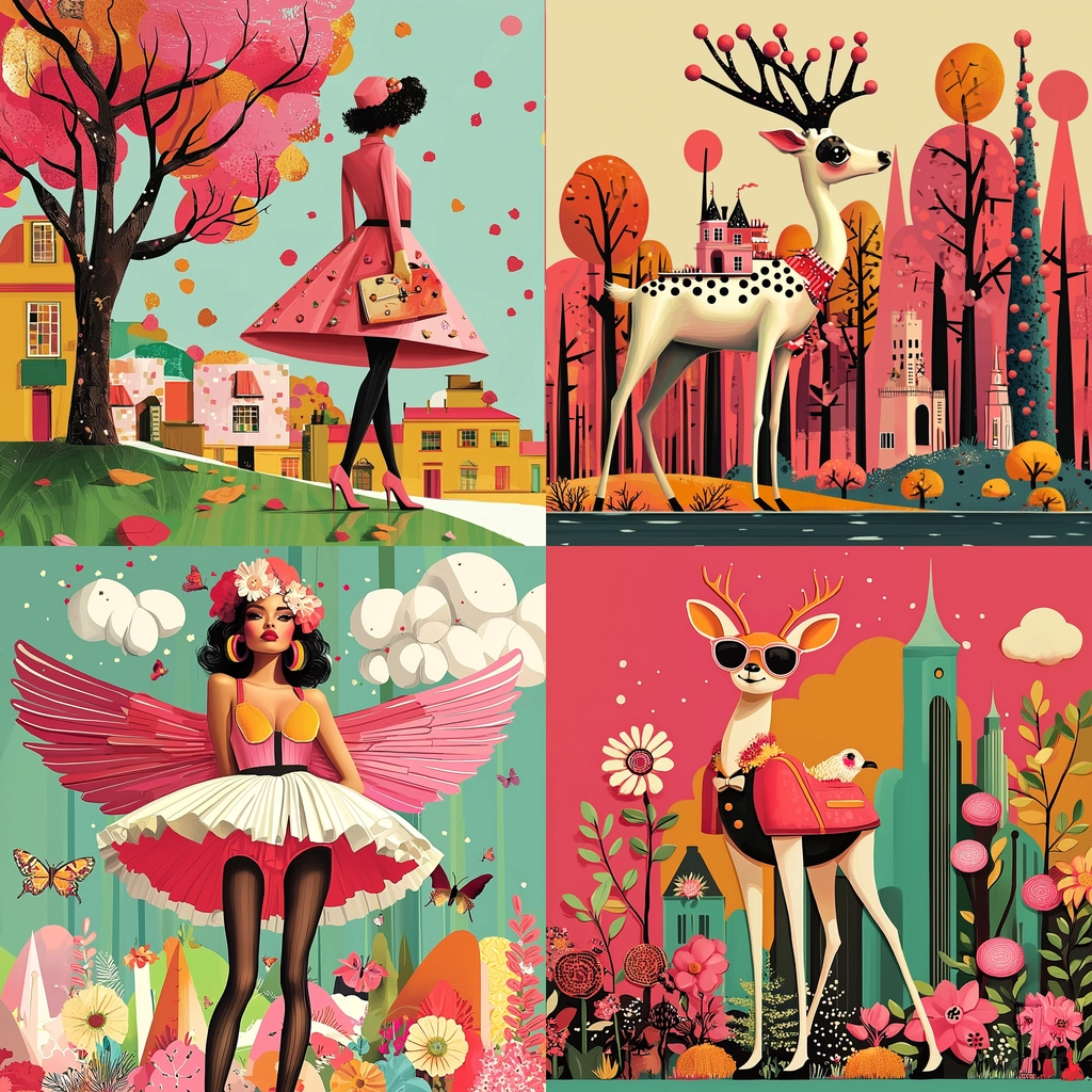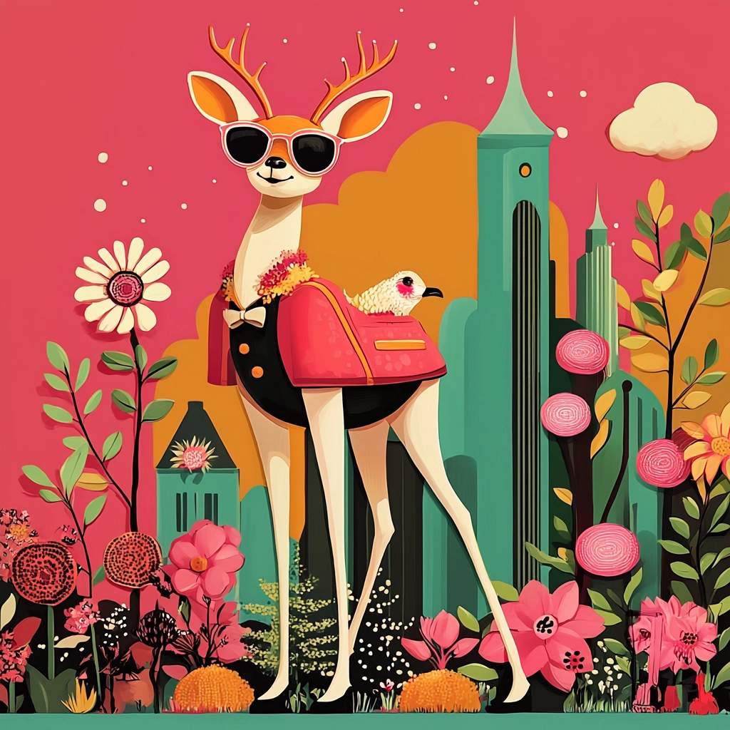 The use of vivid, saturated colors combined with clean, graphic lines creates a dynamic sense of movement. Flat areas of color contrast with intricate details, balancing simplicity with complexity and evoking a lively, energetic atmosphere.