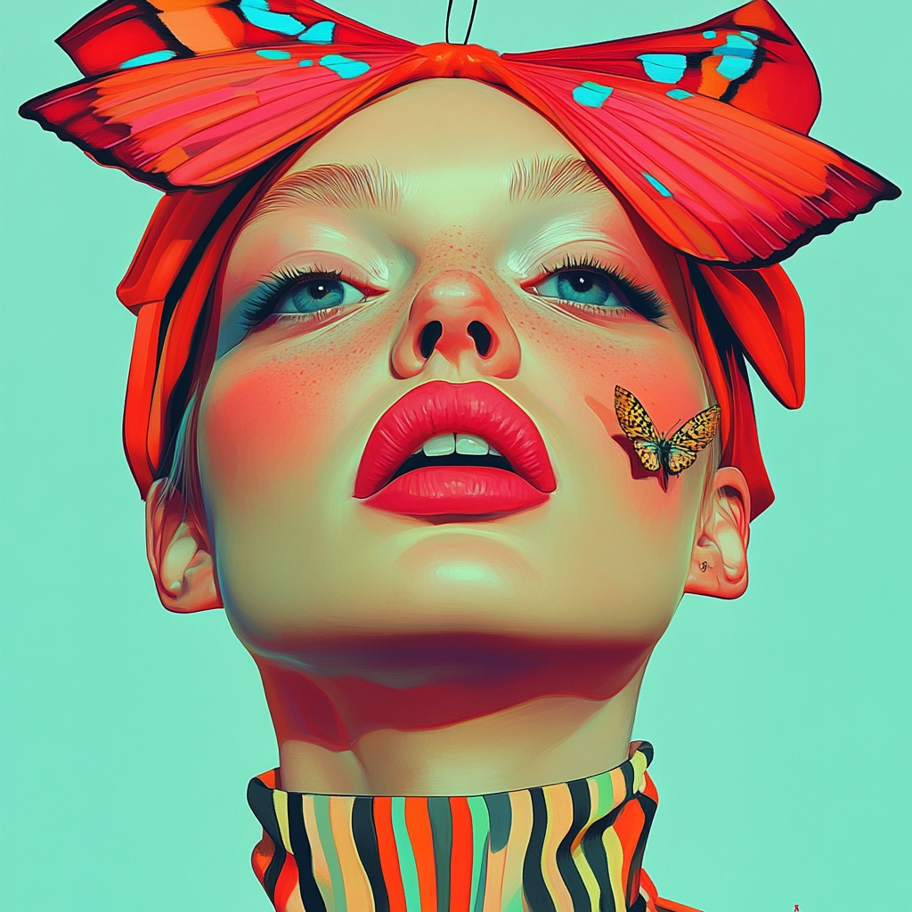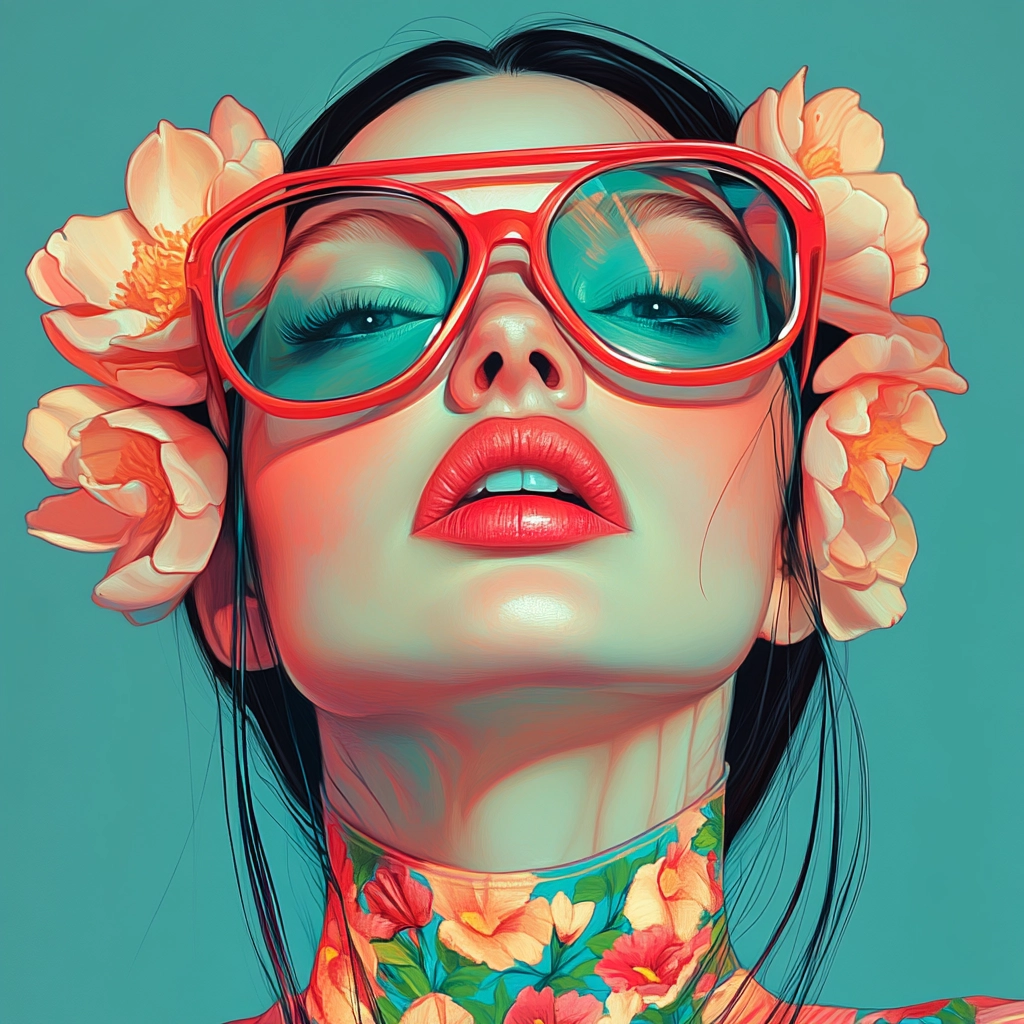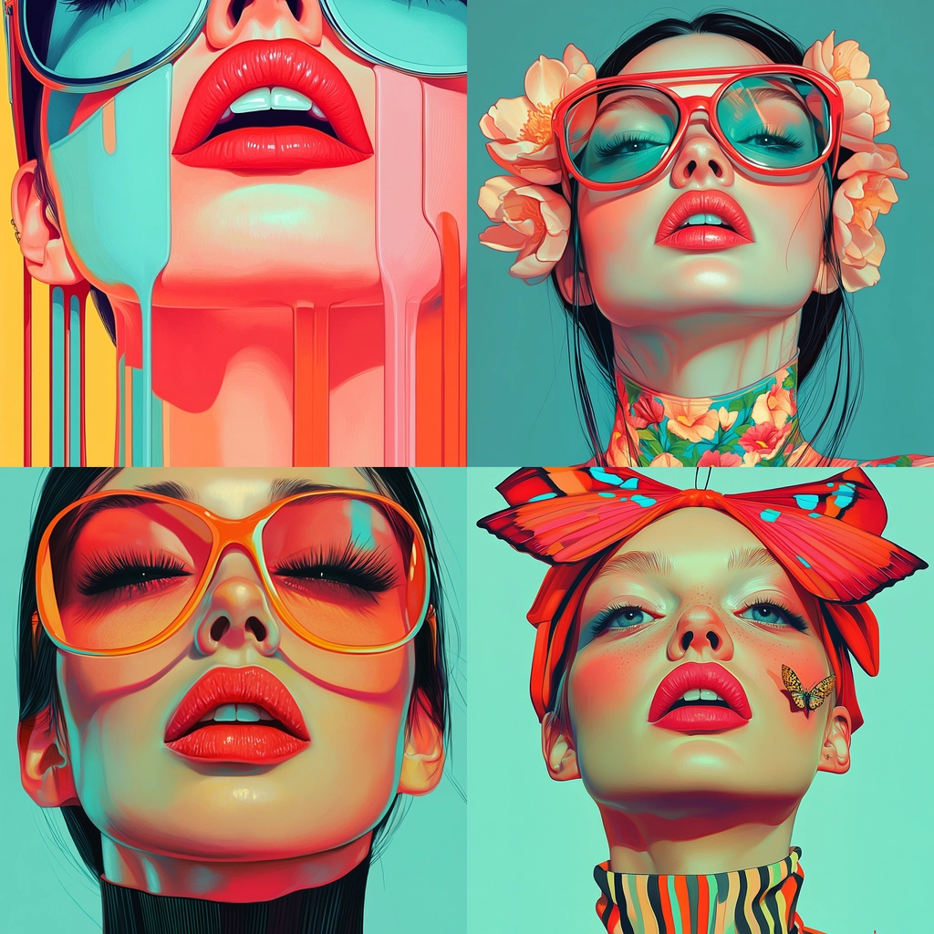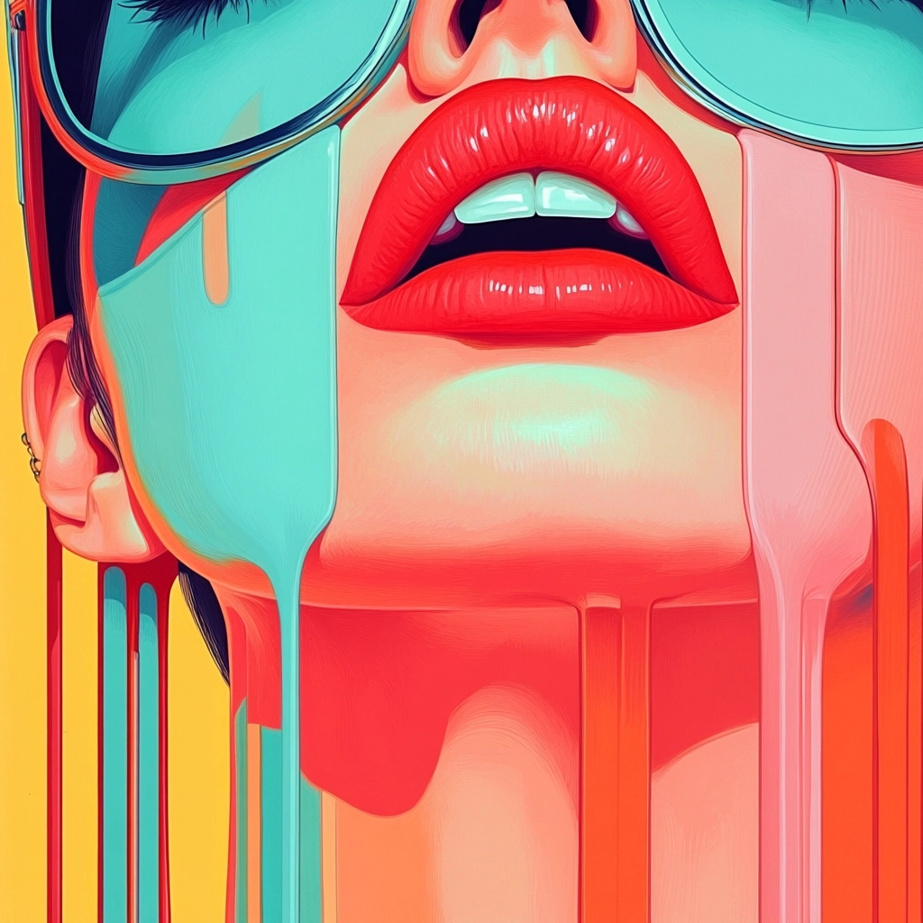 A compelling blend of vibrant, contrasting colors with smooth gradients and bold outlines capturing a surreal aesthetic.