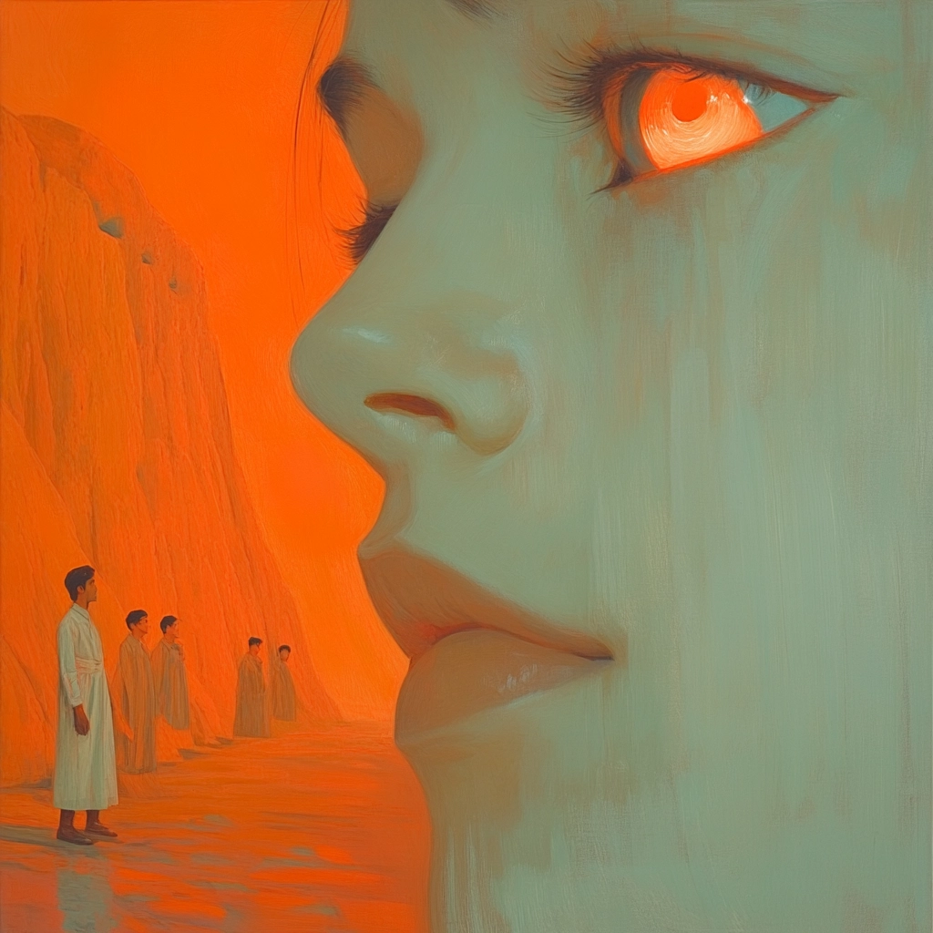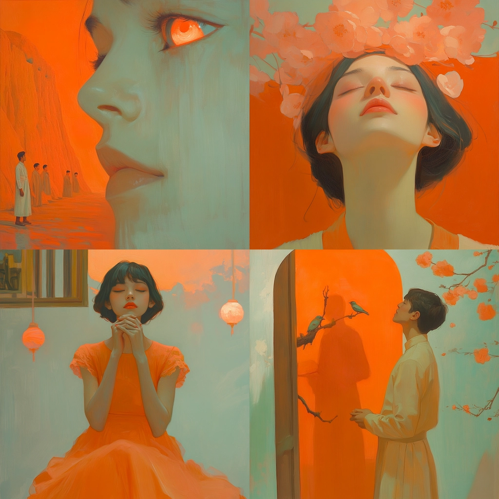 Warm orange hues dominate with subtle beige contrasts.