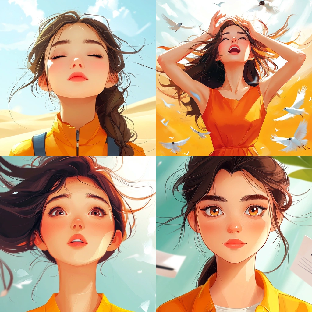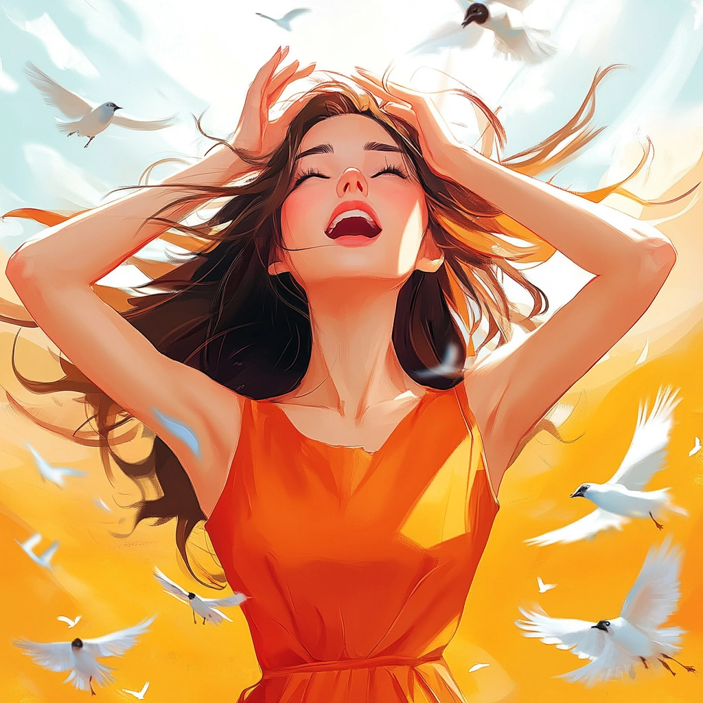 The lighting emphasizes warm hues, creating a vivid, sunlit appearance. Smooth textures and dynamic compositional elements convey a sense of flowing motion and openness.