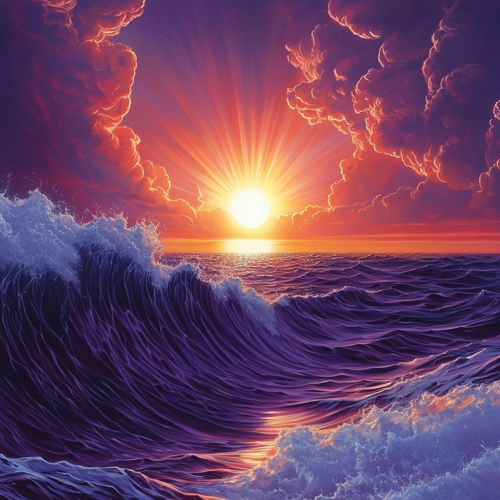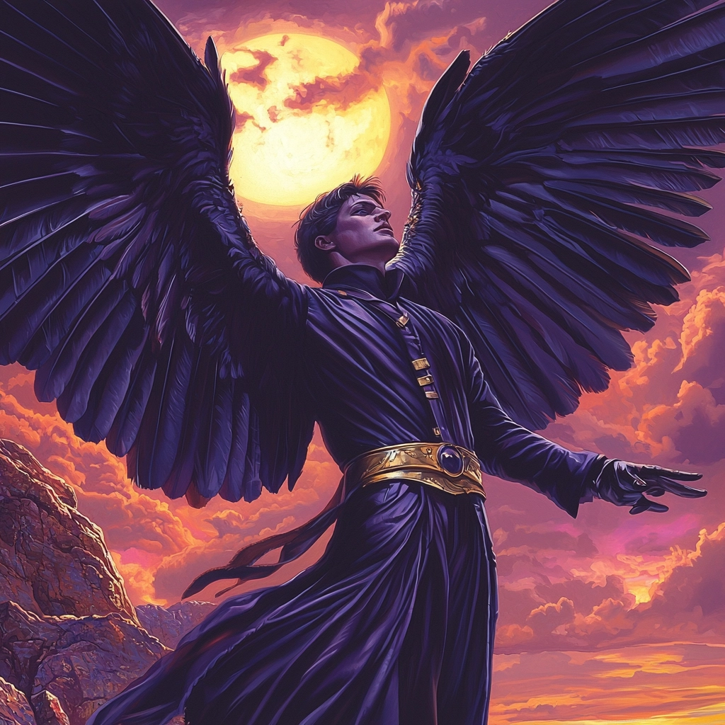 A vivid interplay of sunset hues with deep shadows creates a rich and layered visual experience, evoking a powerful natural setting.