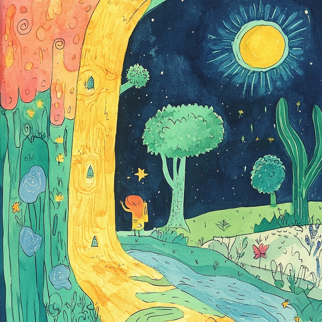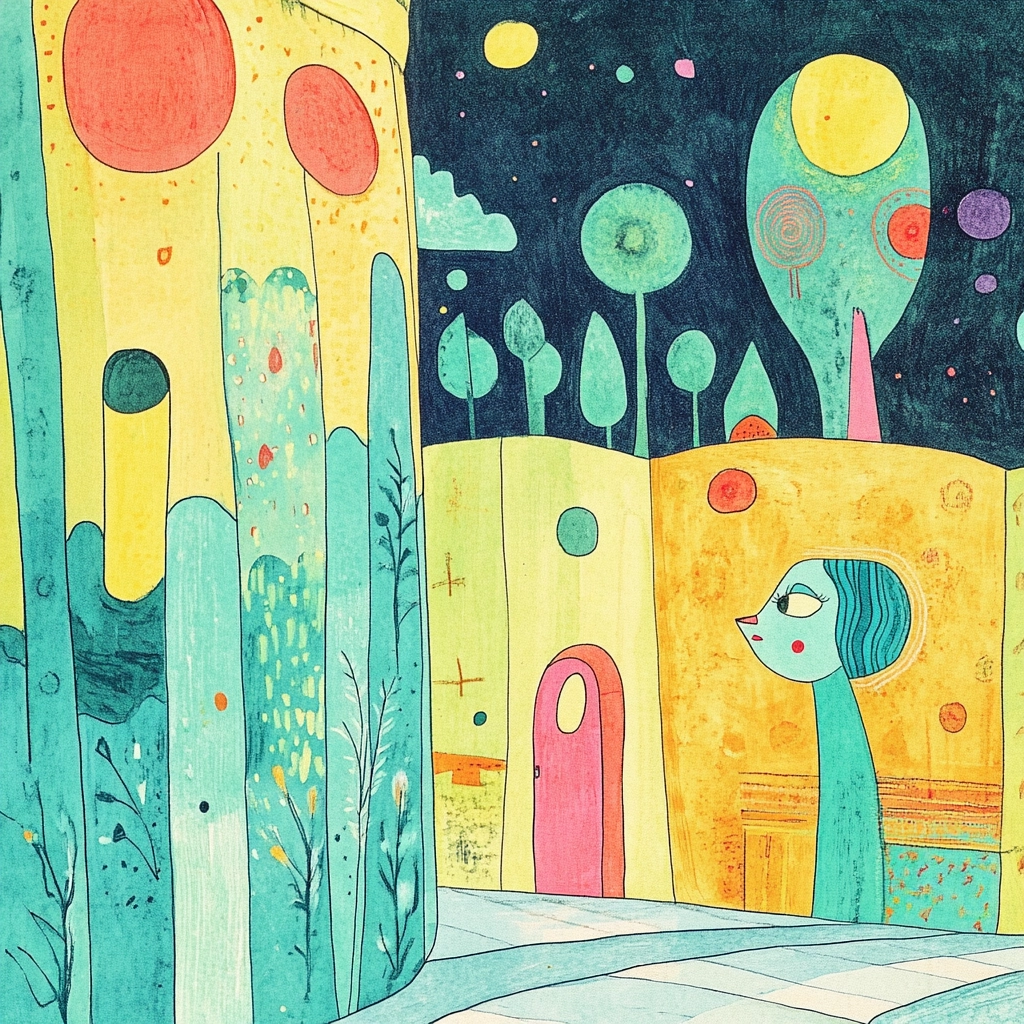 Vivid colors and playful structures create an imaginative and artistic sense.