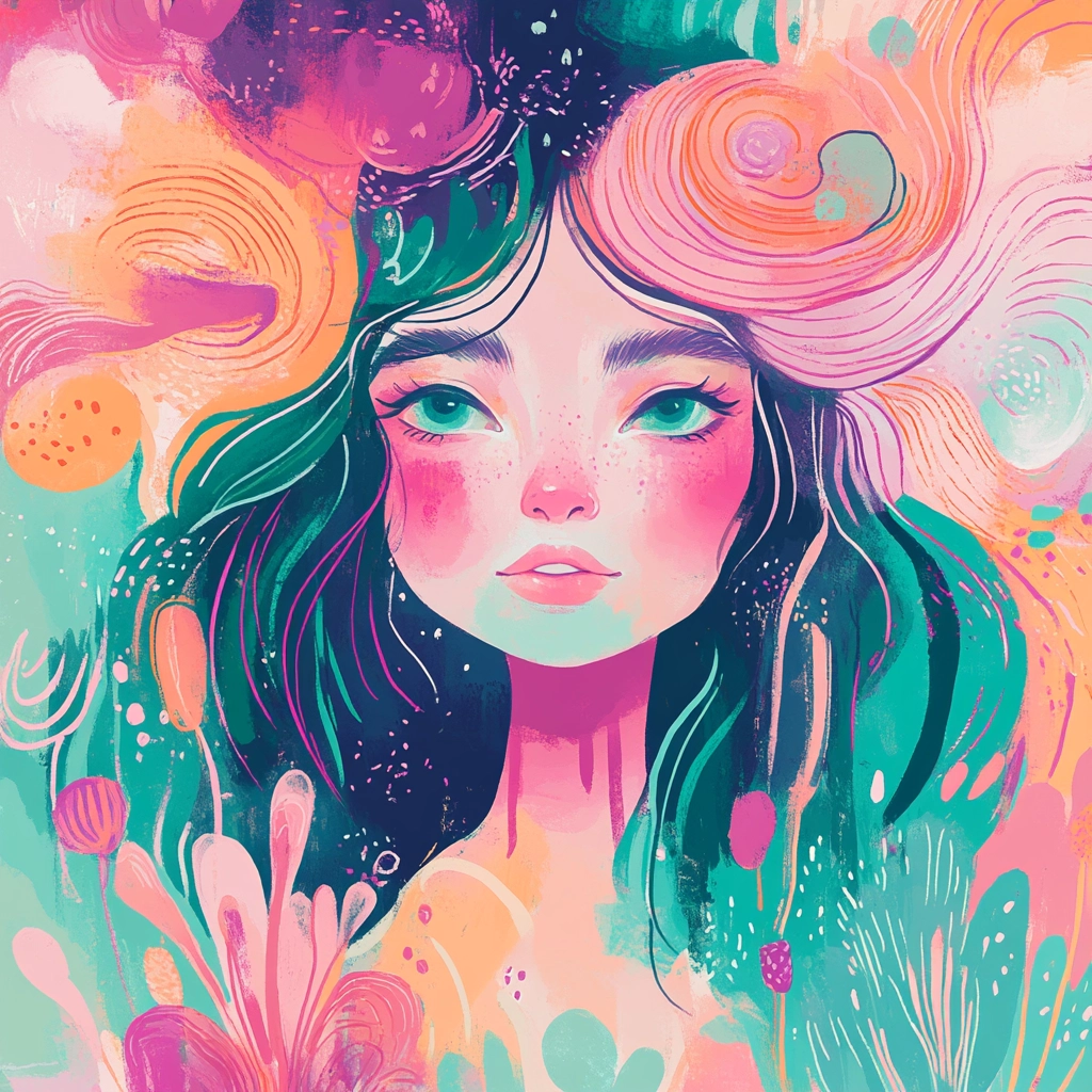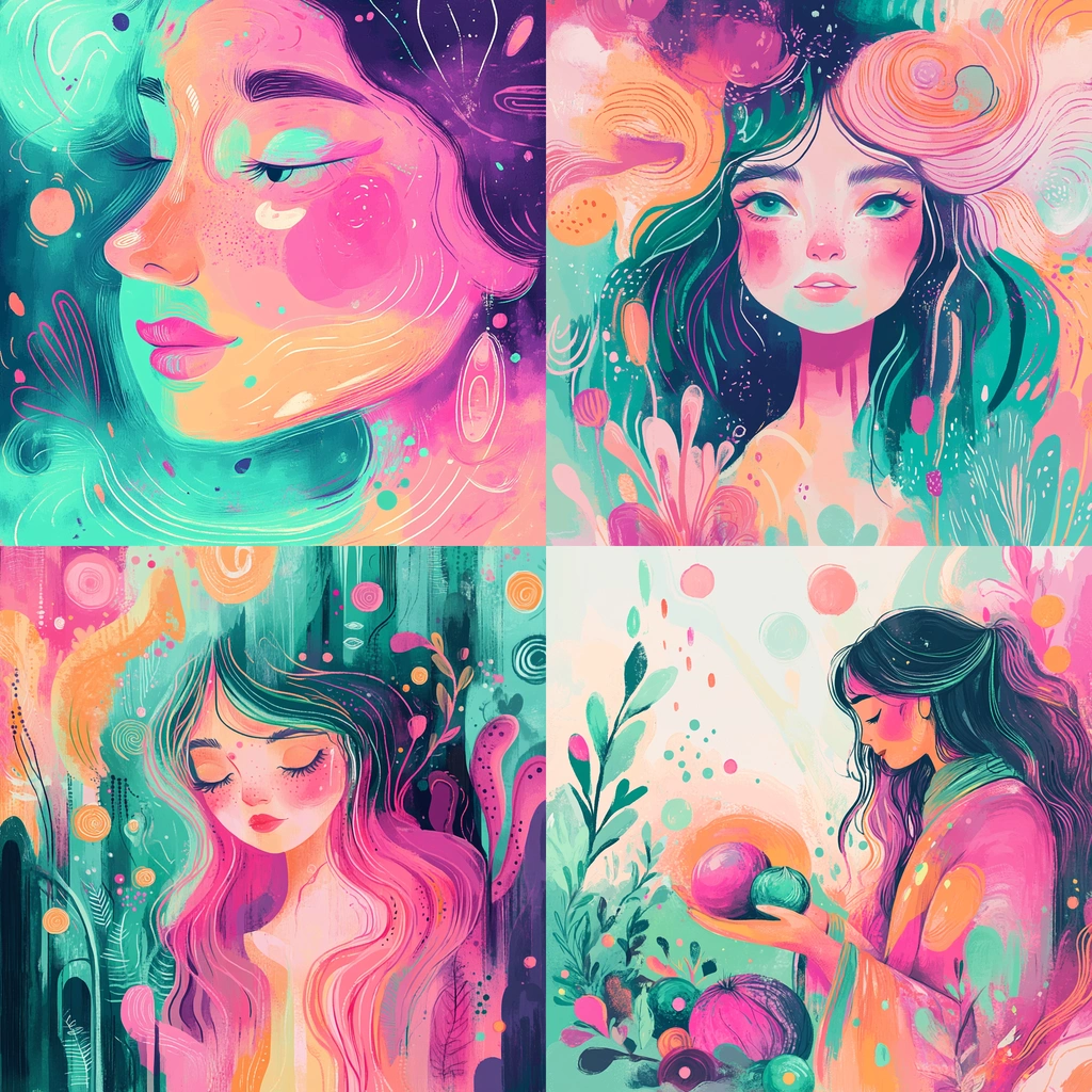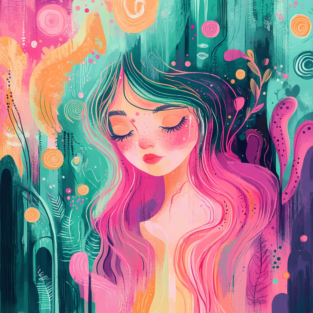 The lighting is soft, enhancing vivid colors and fluid lines. The use of gradients forms a flowing spatial sense, and textures are smooth, creating a sense of dynamic movement.