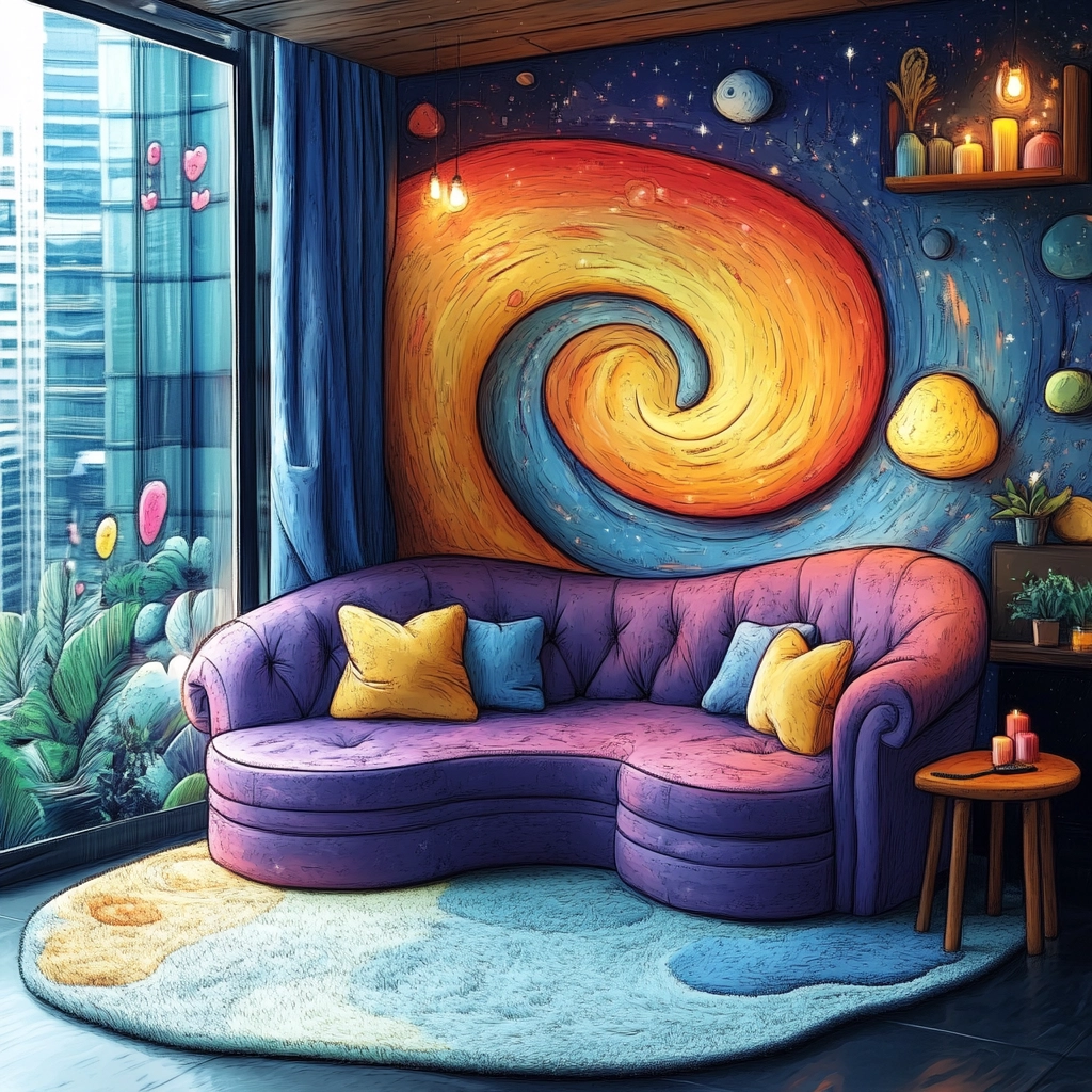 A dynamic interplay of swirling colors creates a vivid, textured experience.