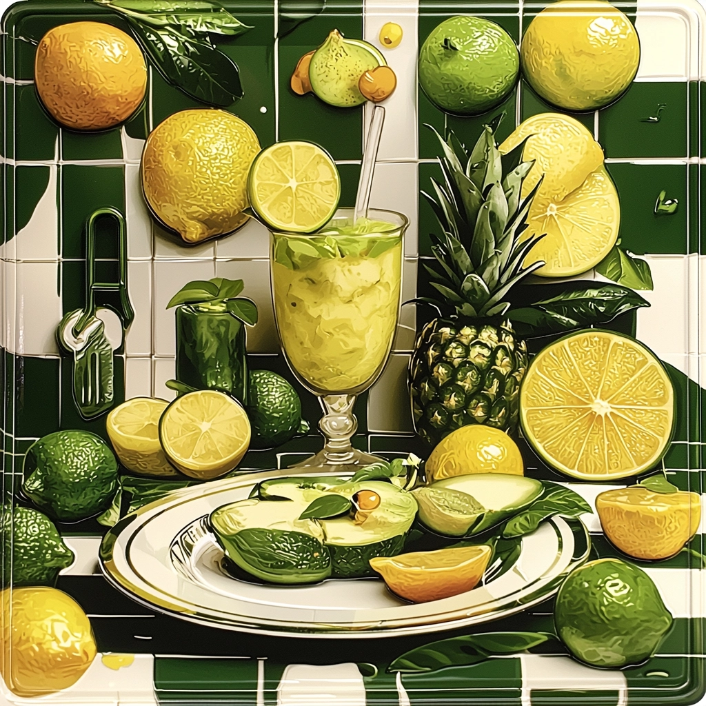 This composition features vivid colors with distinct textures, creating a vibrant and dynamic visual experience.