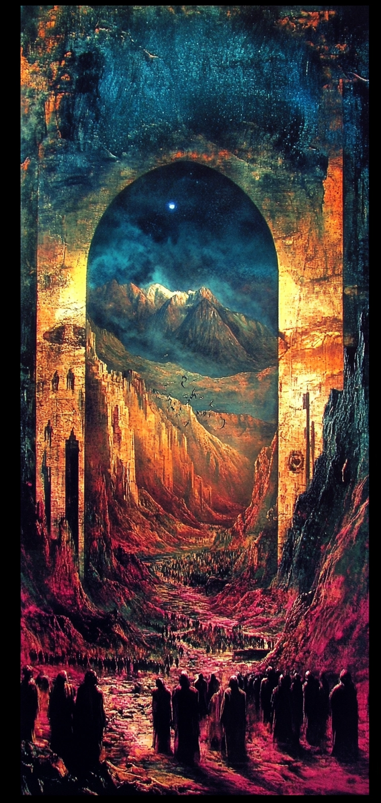 An intense interplay of bold hues and textural depth.