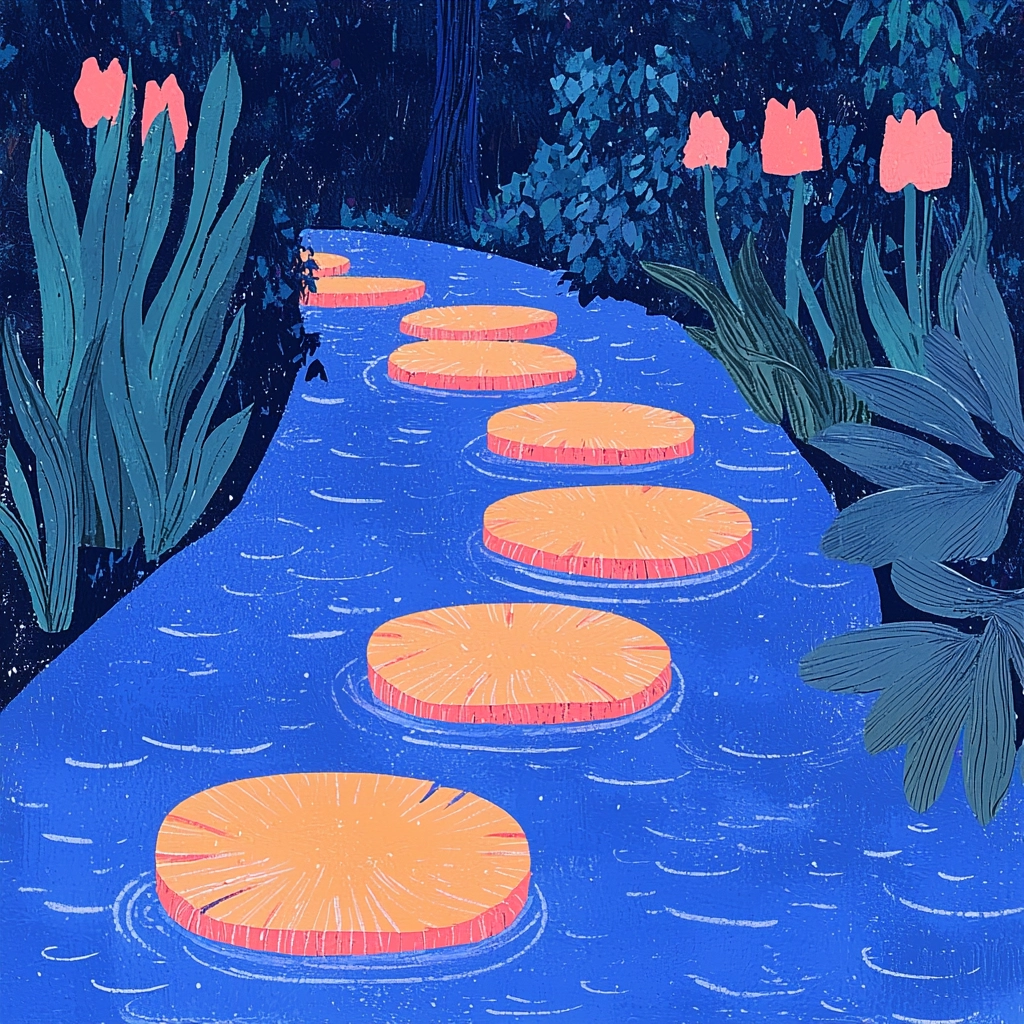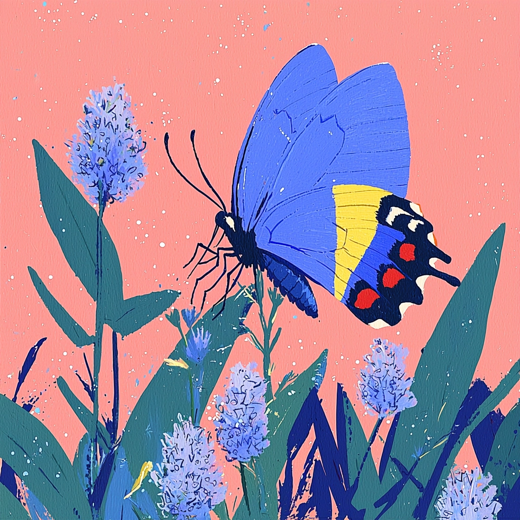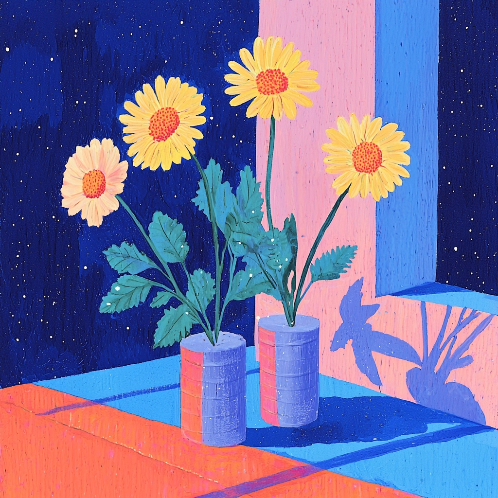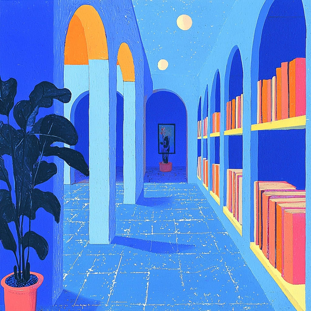 A vivid use of blue and orange hues with a focus on distinct, textured detailing.