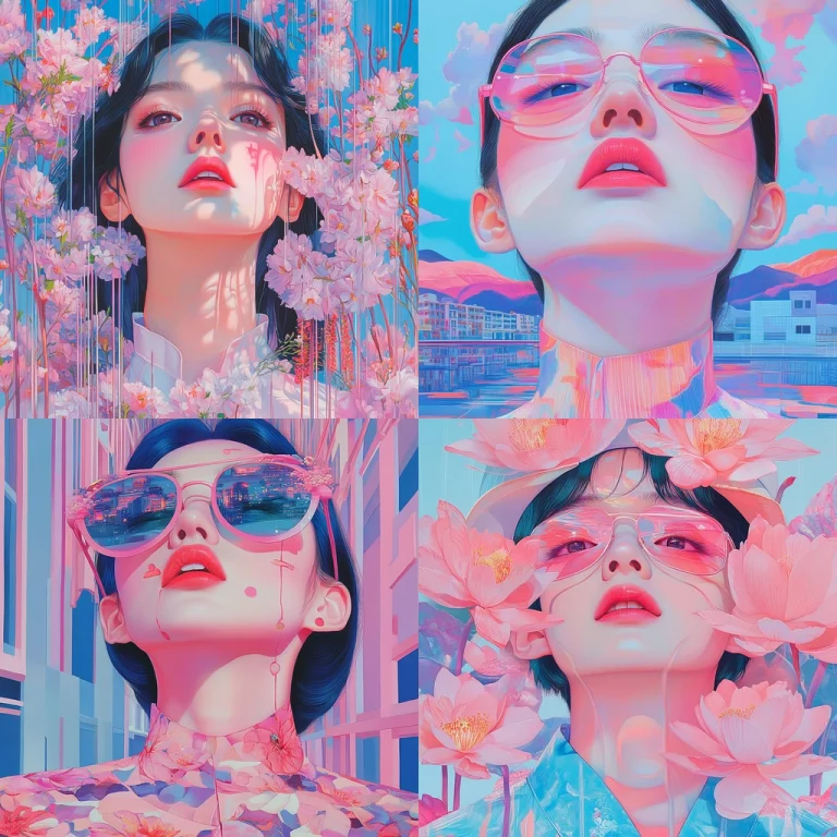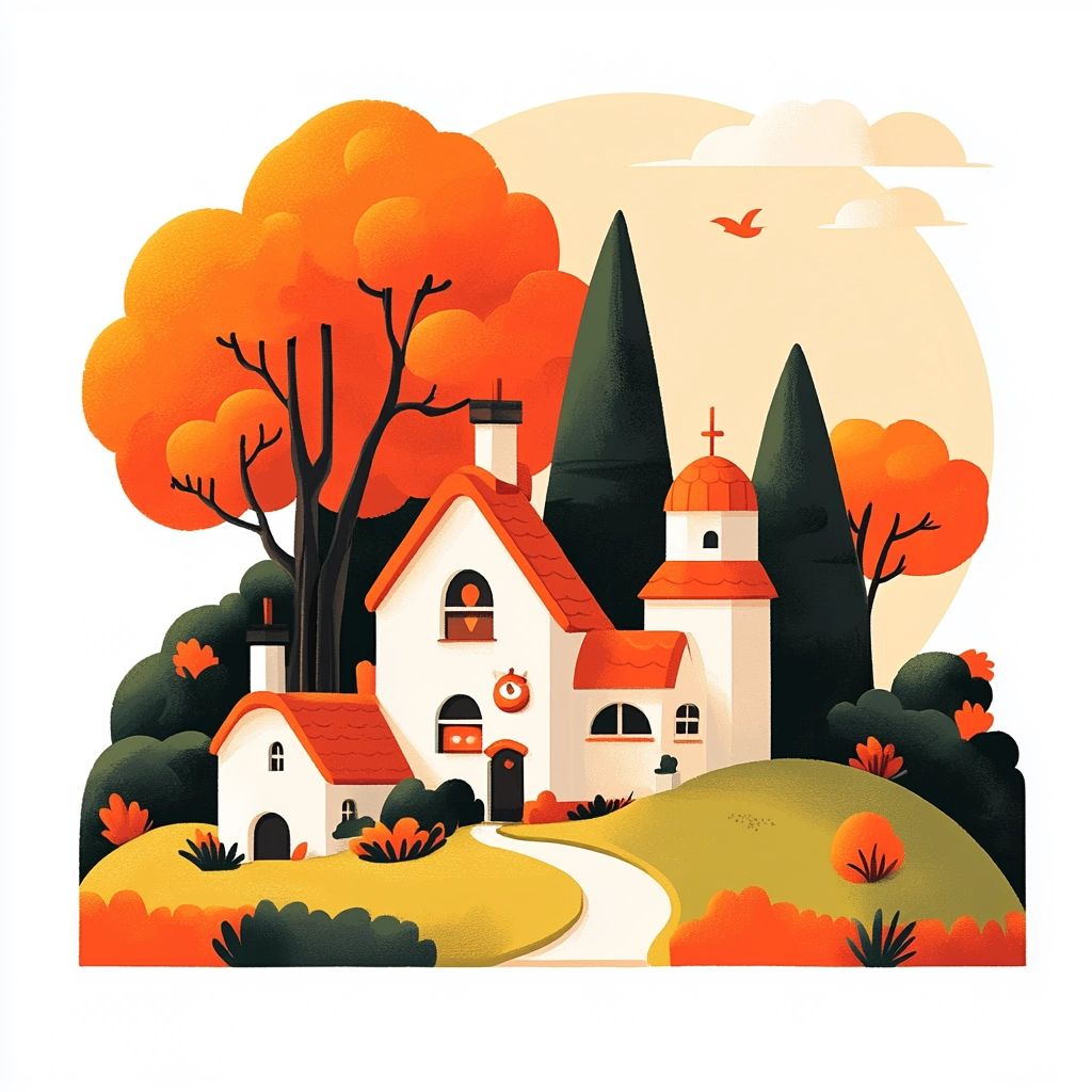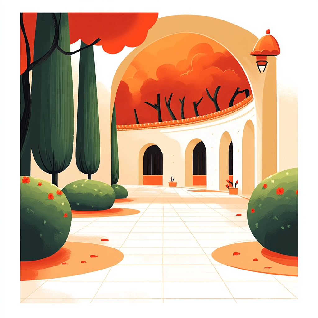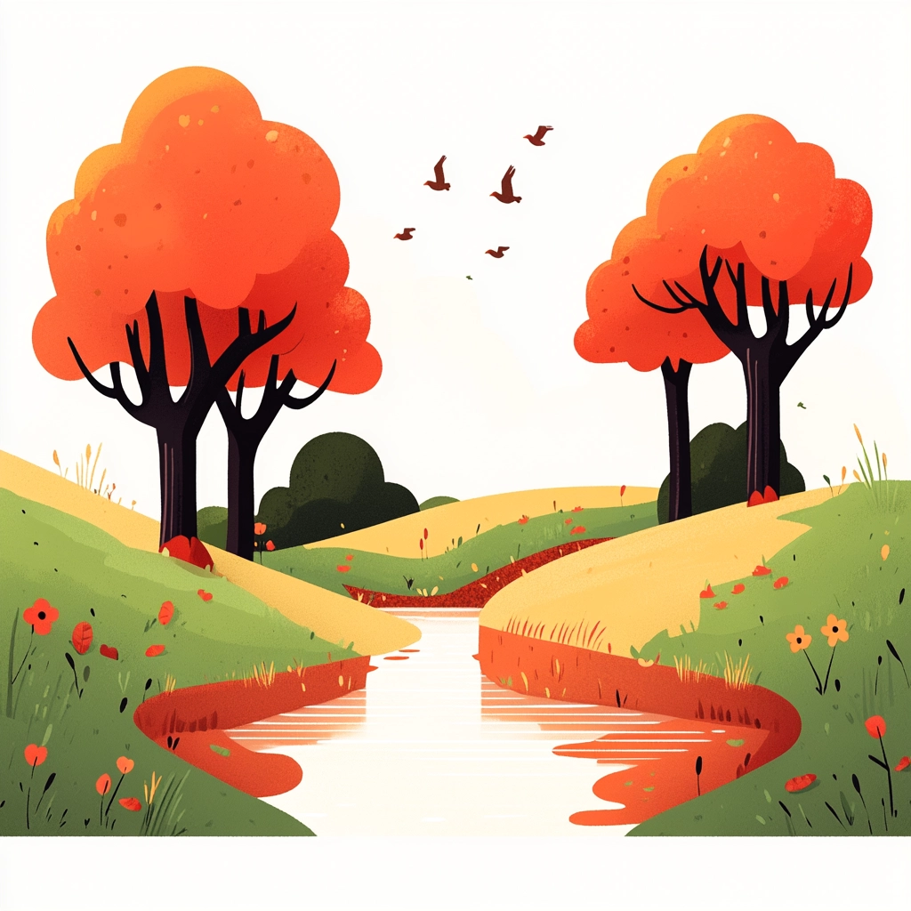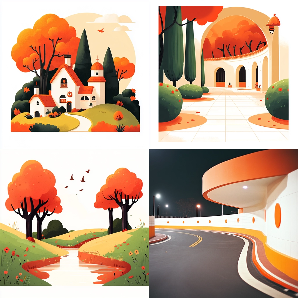 Lighting effects emphasize natural forms, creating vivid contrasts between the warm orange hues and the cooler greens. The textures are smooth and clean, enhancing the visual sharpness of each element. A balanced spatial sense gives prominence to both foreground and background with a clear depth of field.
