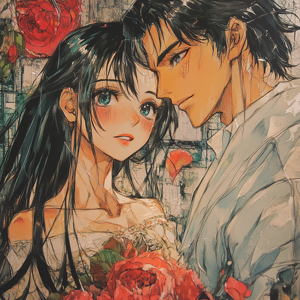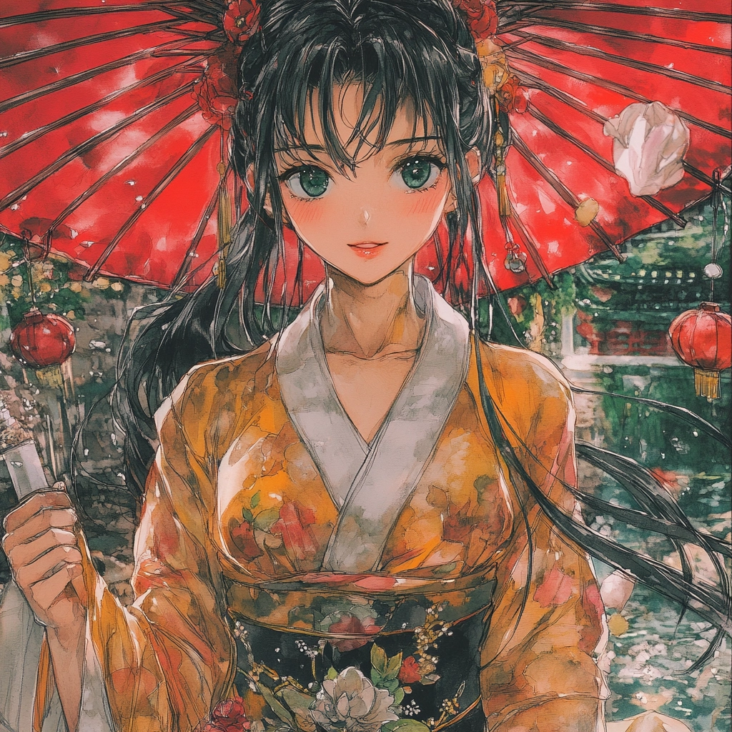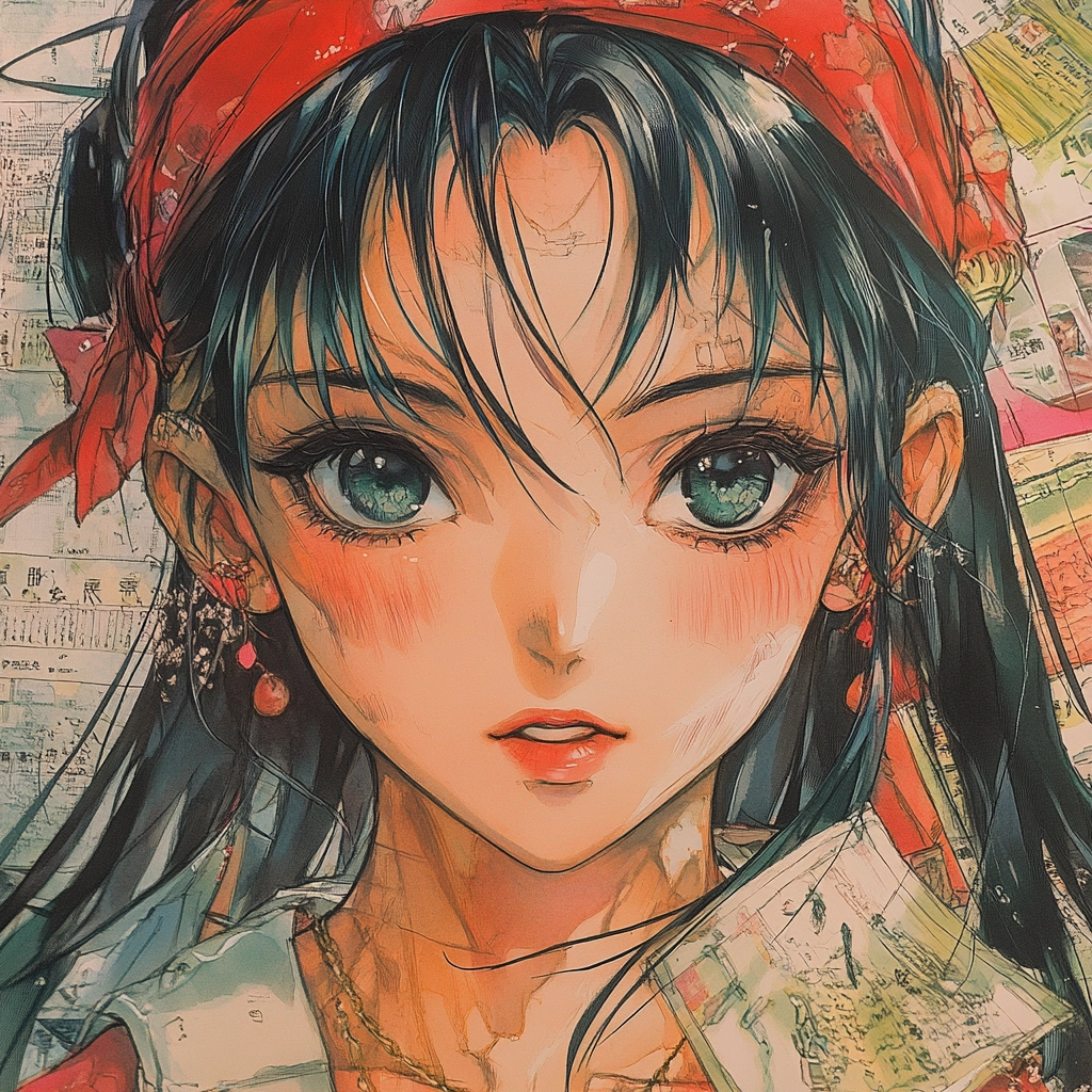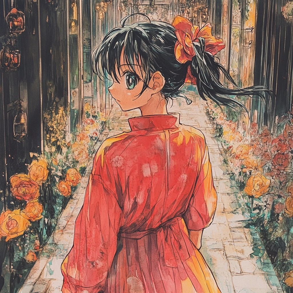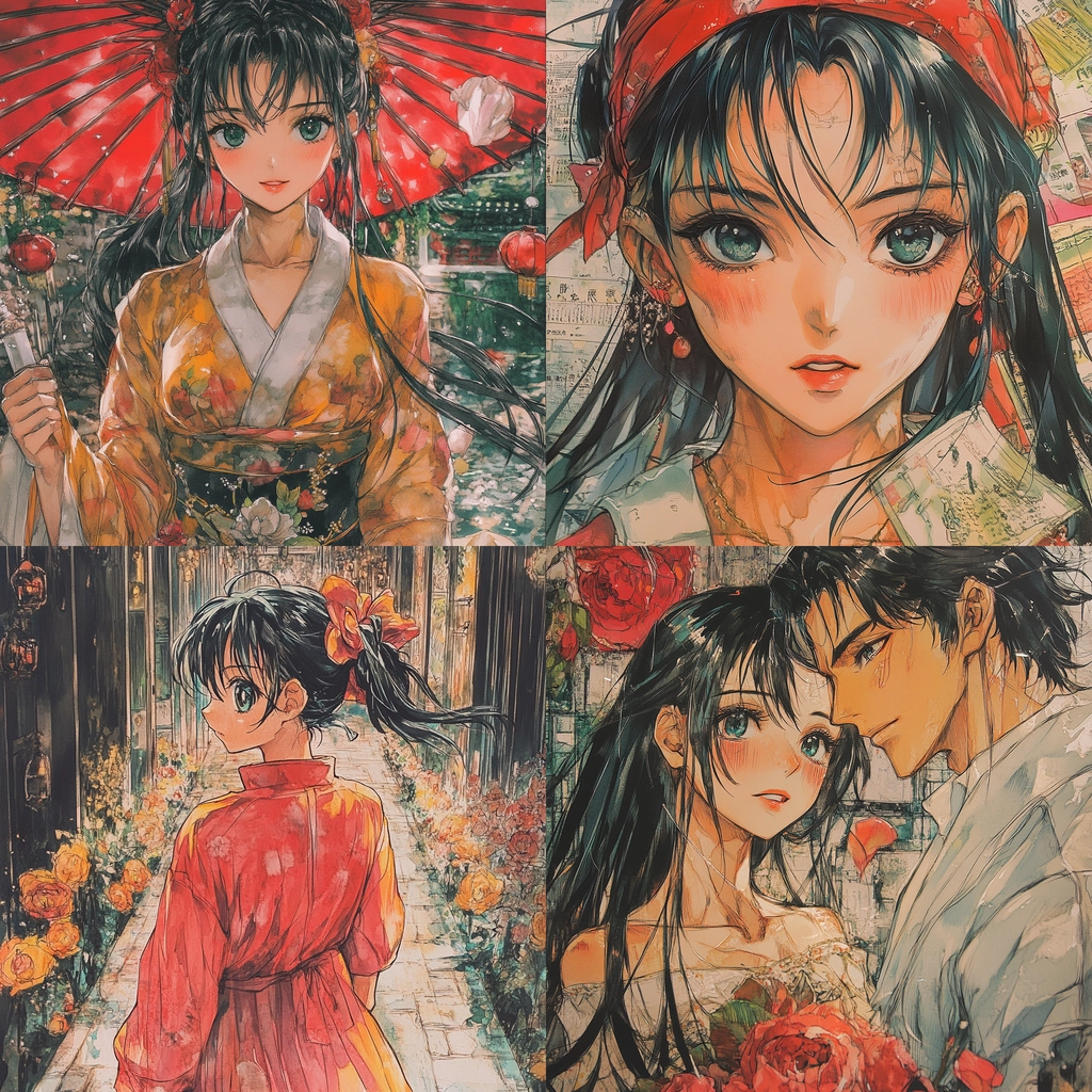 Rich use of red and orange hues with dynamic brushwork.