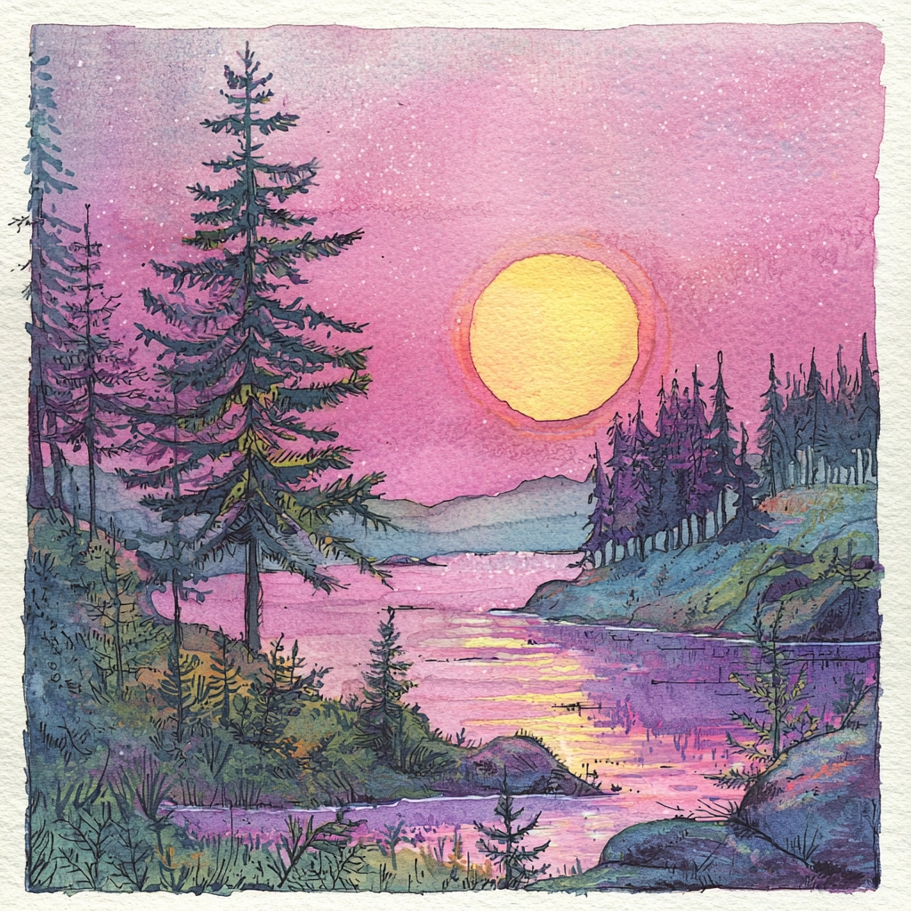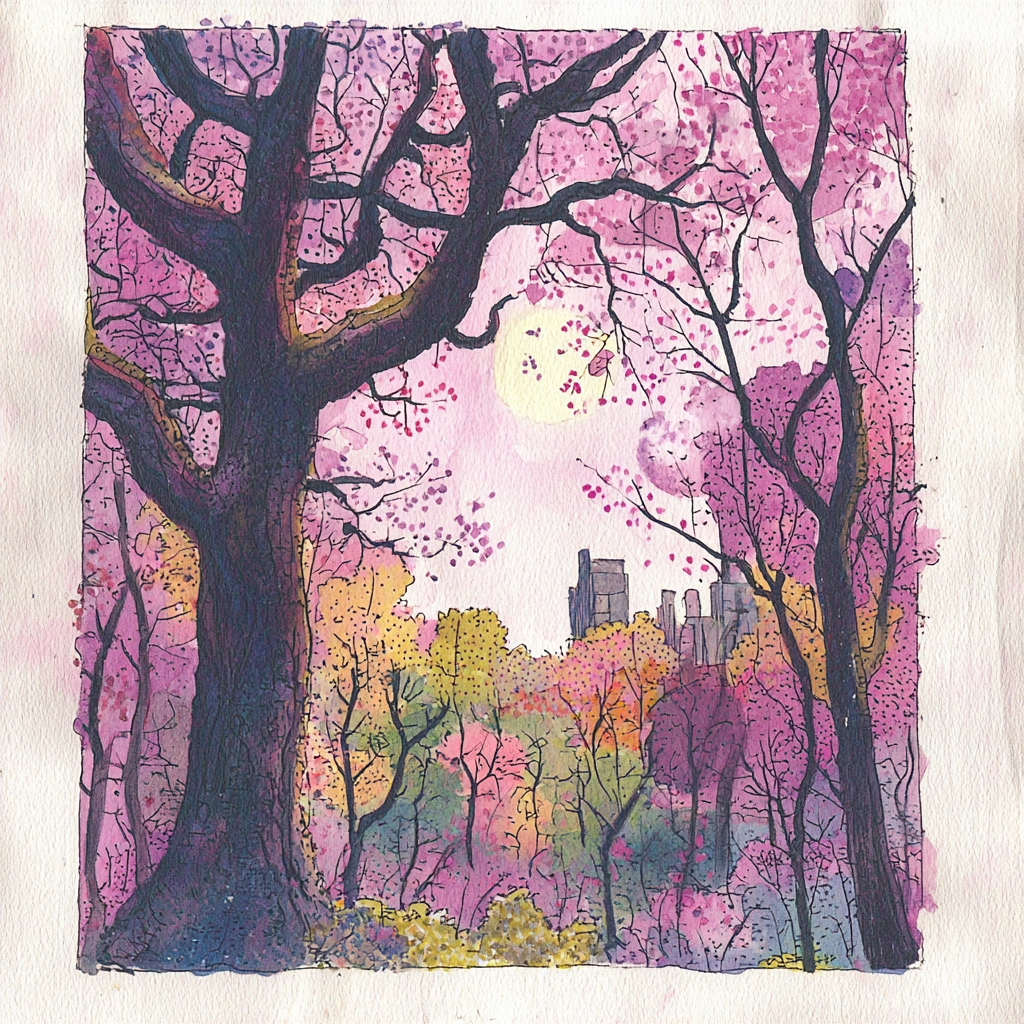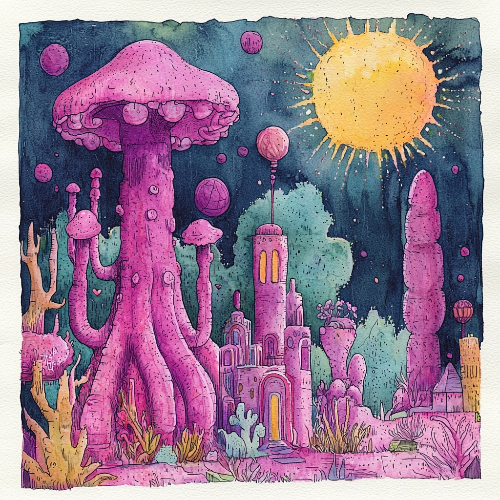 The lighting creates sharp contrast, enhancing the vibrant hues of purple and pink against a softer yellow glow. The textures are smoothly blended, with a sense of depth that draws the viewer into each composition vividly.