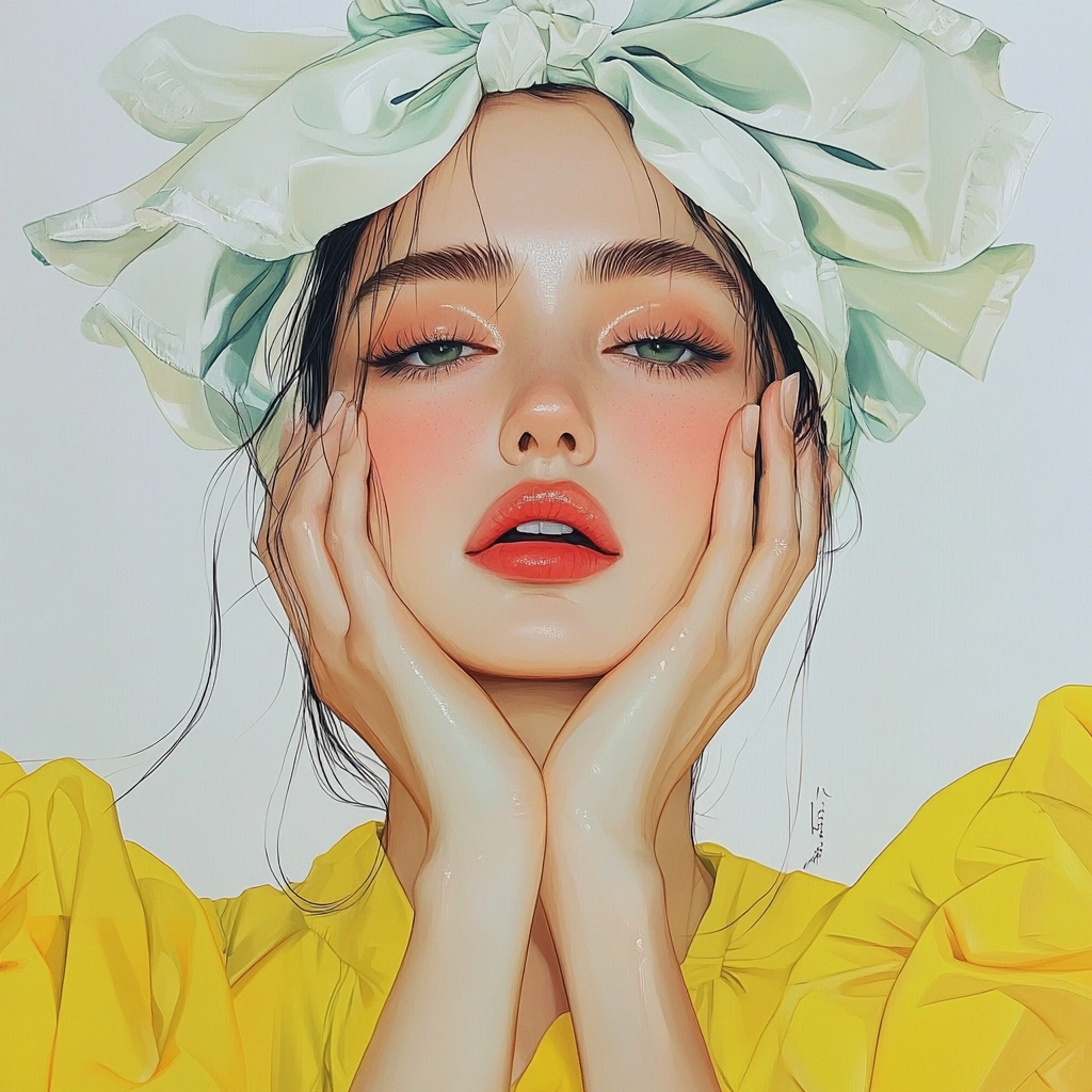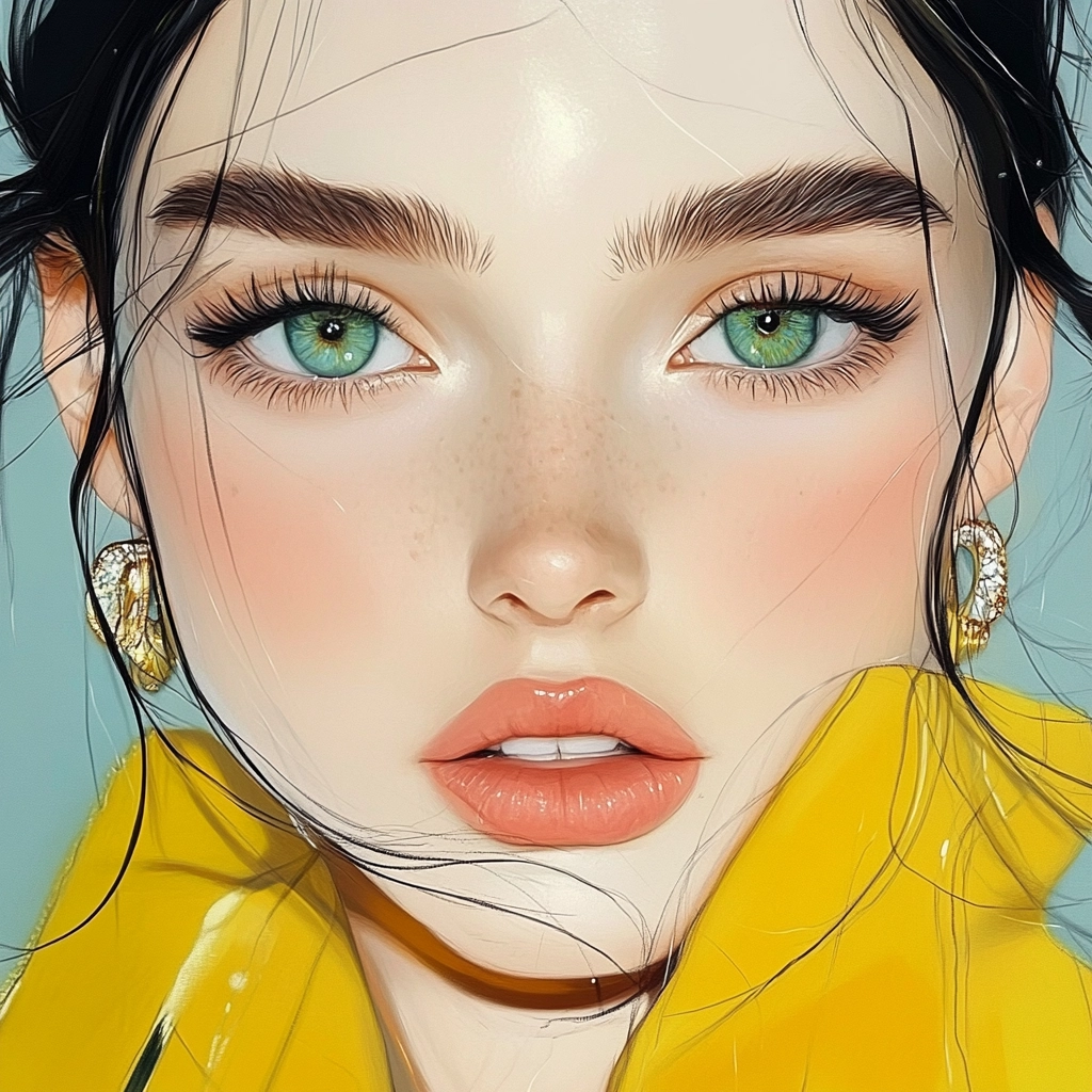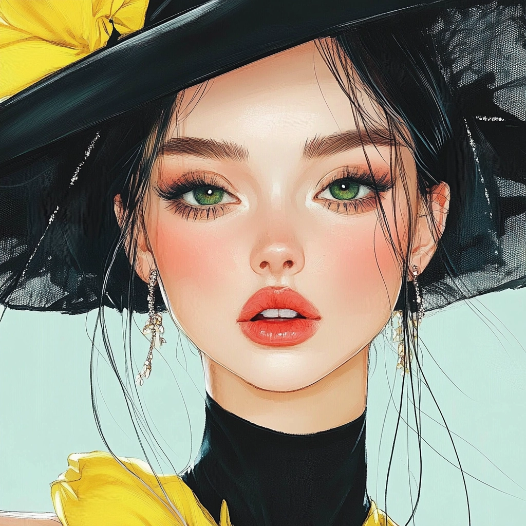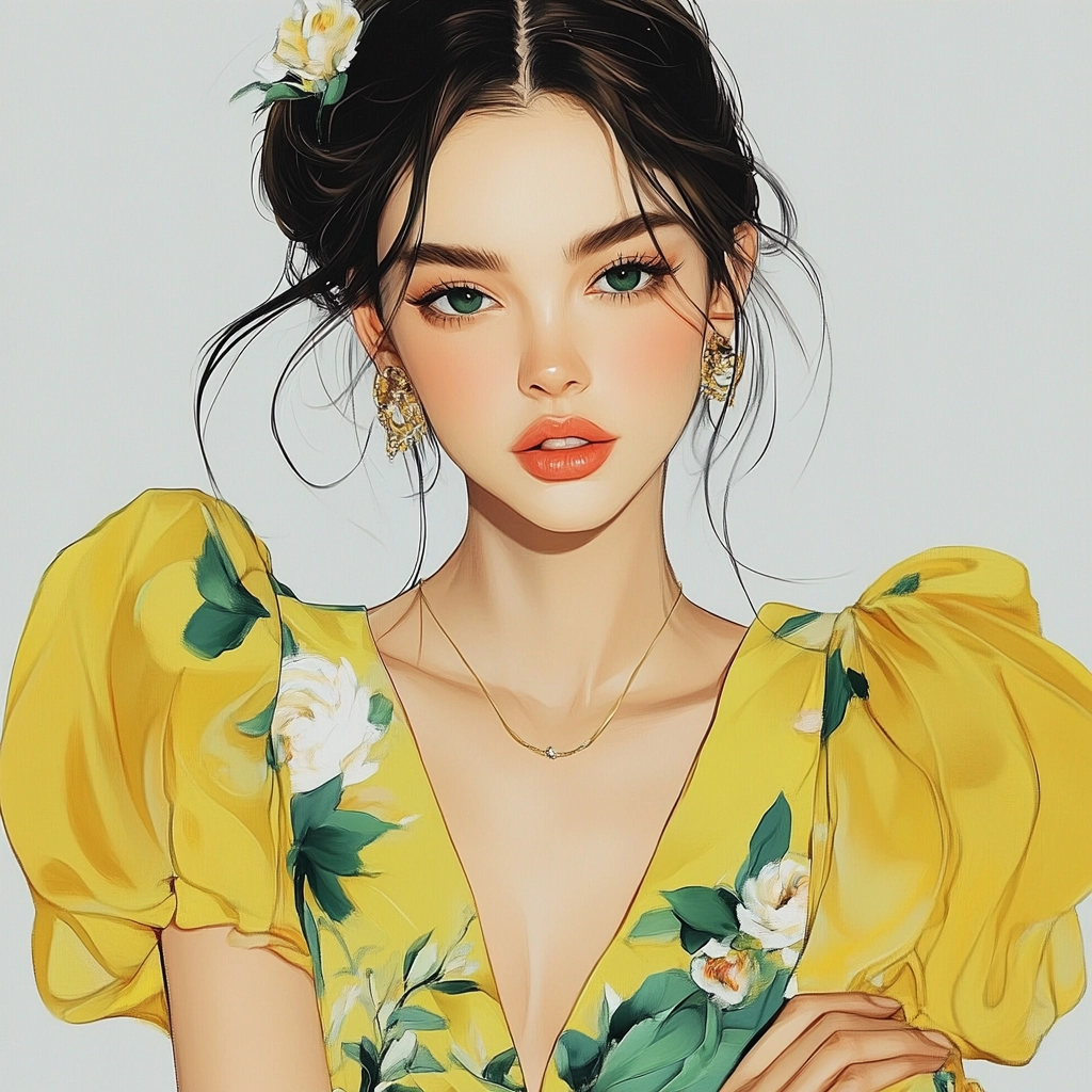 Dominated by vivid yellow tones accented with black and white, the piece uses fine detailing and smooth texture to create a lively and focused visual impact.