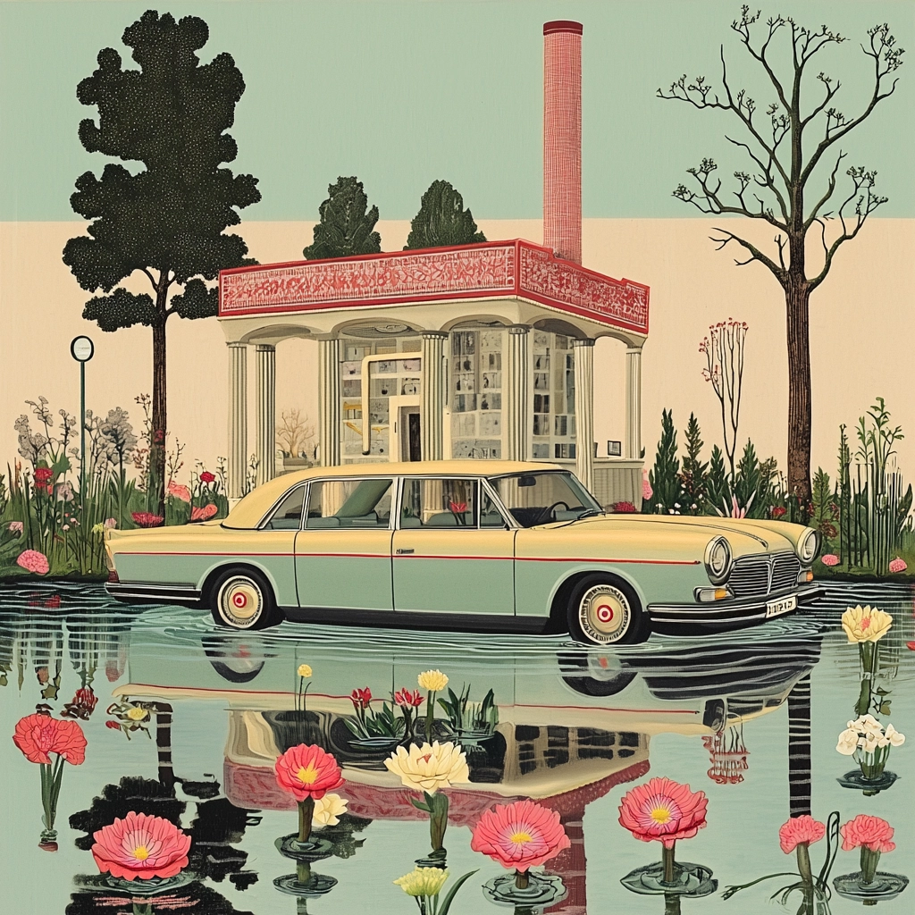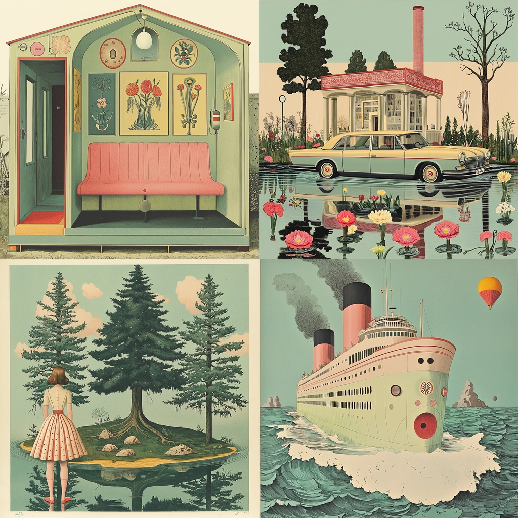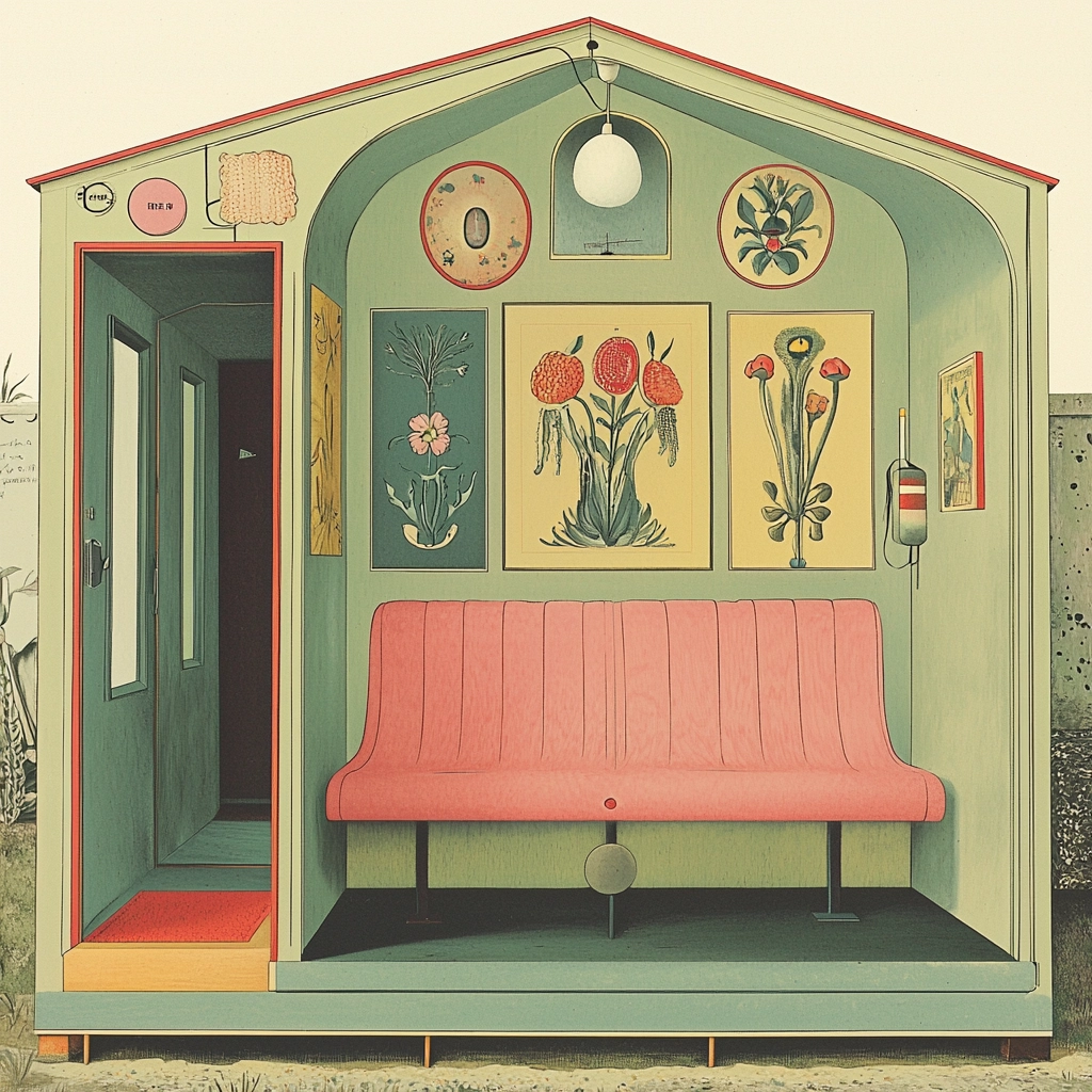 Subtle gradients of pastel tones create a gentle lighting effect, enhancing the sense of space, while the smooth texture emphasizes the crispness of outlined forms in balanced compositions.