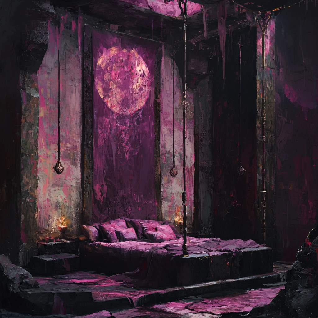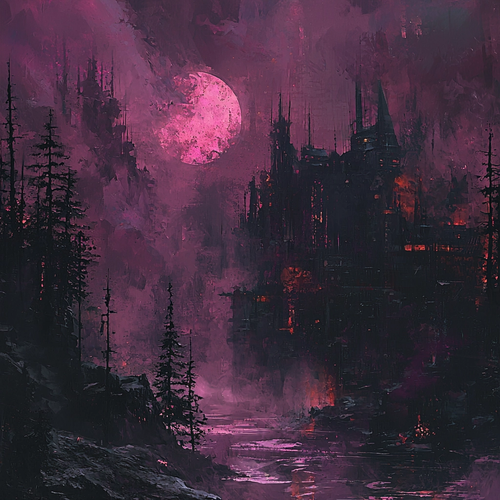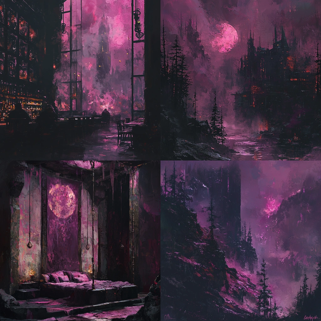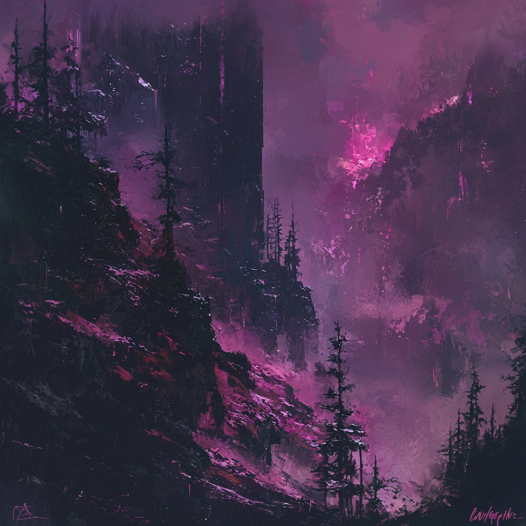 Dark, radiant purple tones dominate with glowing accents and atmospheric depth.