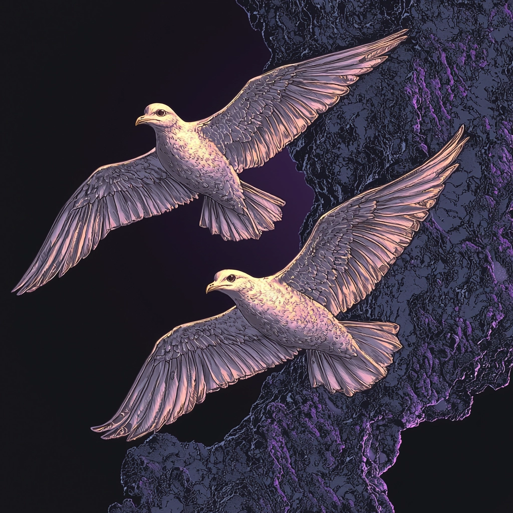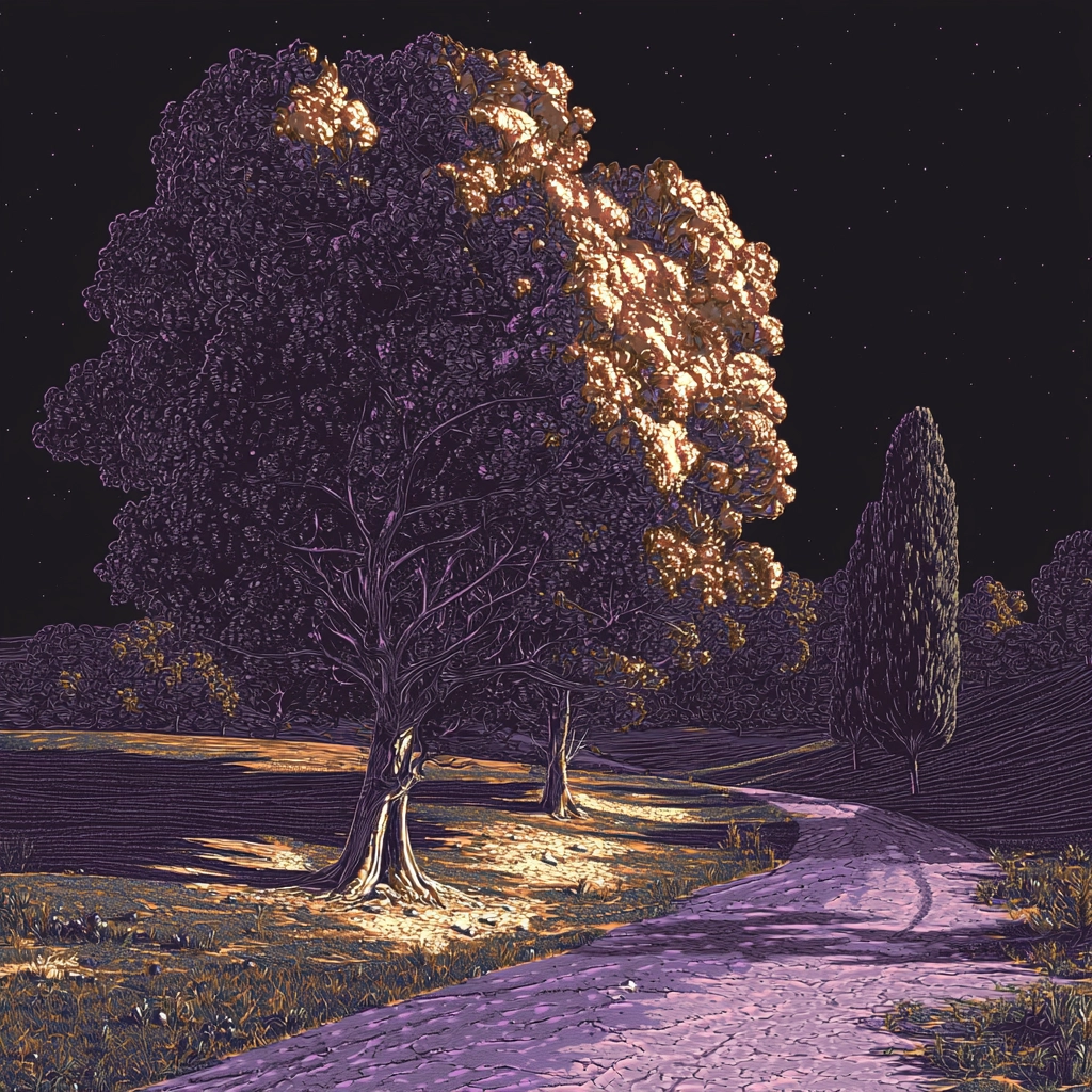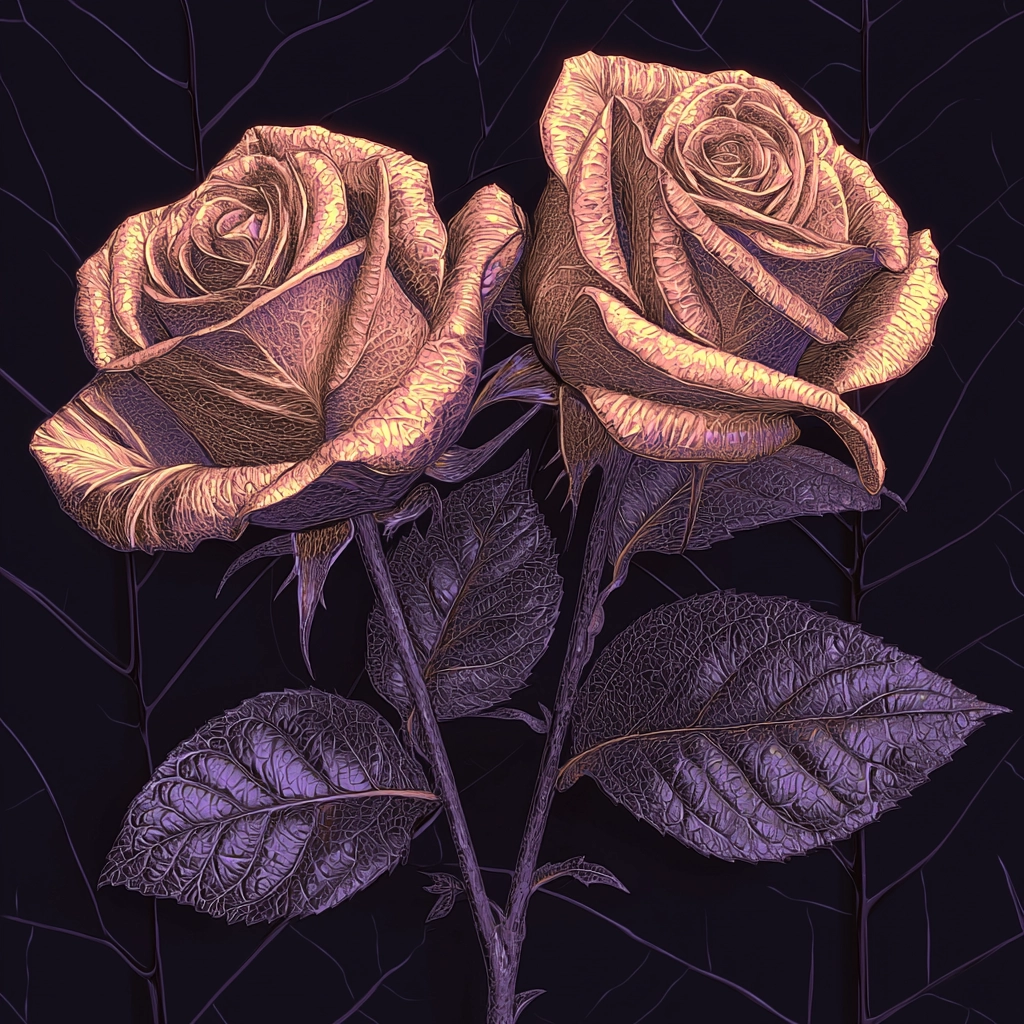 The use of lighting emphasizes the rich textures and dimensional depth, while purple tones dominate the canvas, creating a structured yet dynamic arrangement. The play of shadow and light enhances the tactile quality, inviting a study of light interference and surface detail.