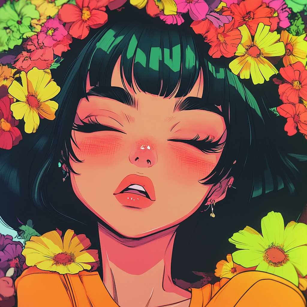 The composition combines vibrant hues with expressive outlines, creating a dynamic and bold visual experience.
