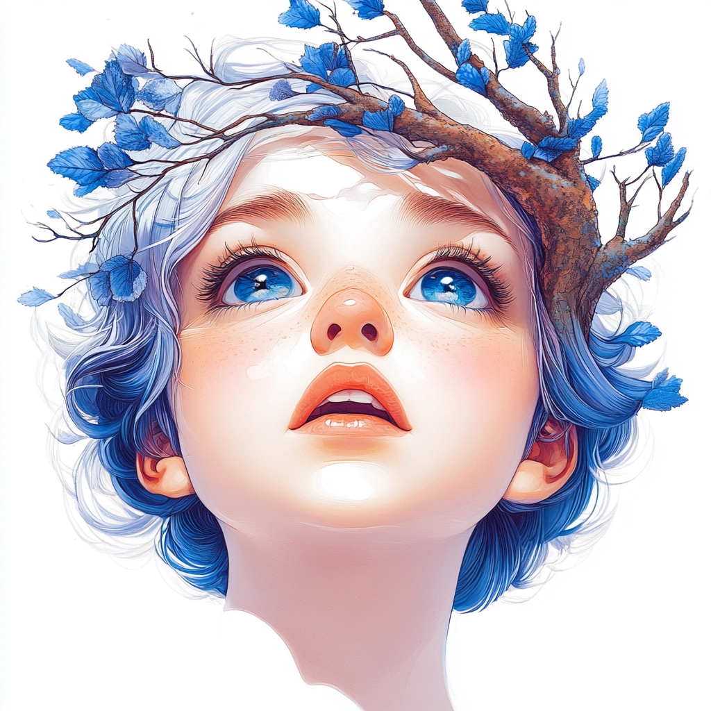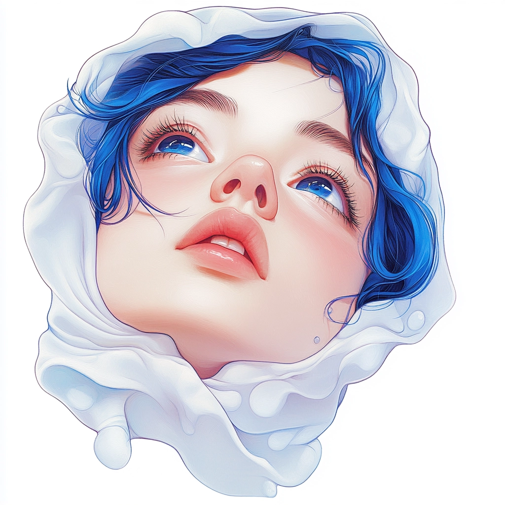 A composition with striking blue hues and dynamic white forms.