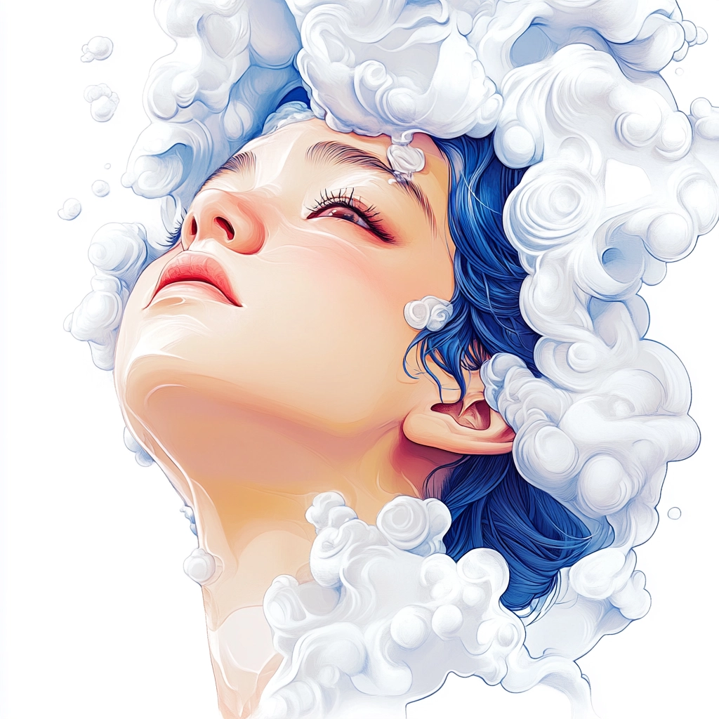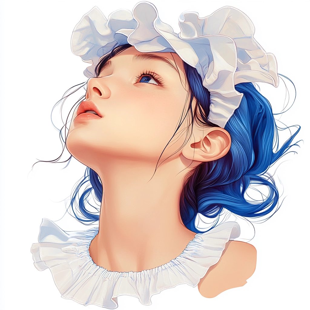 Lighting accentuates the vivid blue, creating a strong contrast with soft, smooth white textures that evoke a sculptural feel. Curving forms suggest a sense of movement and depth, enhancing the overall spatial dimension.