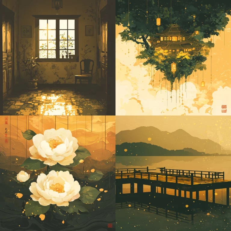 The scenes are rendered in vivid hues with textured brushstrokes creating energetic compositions.