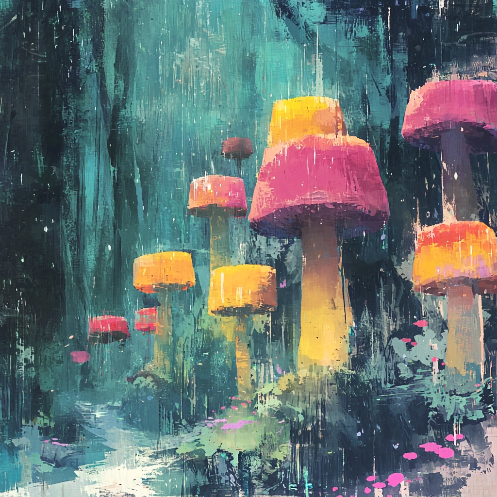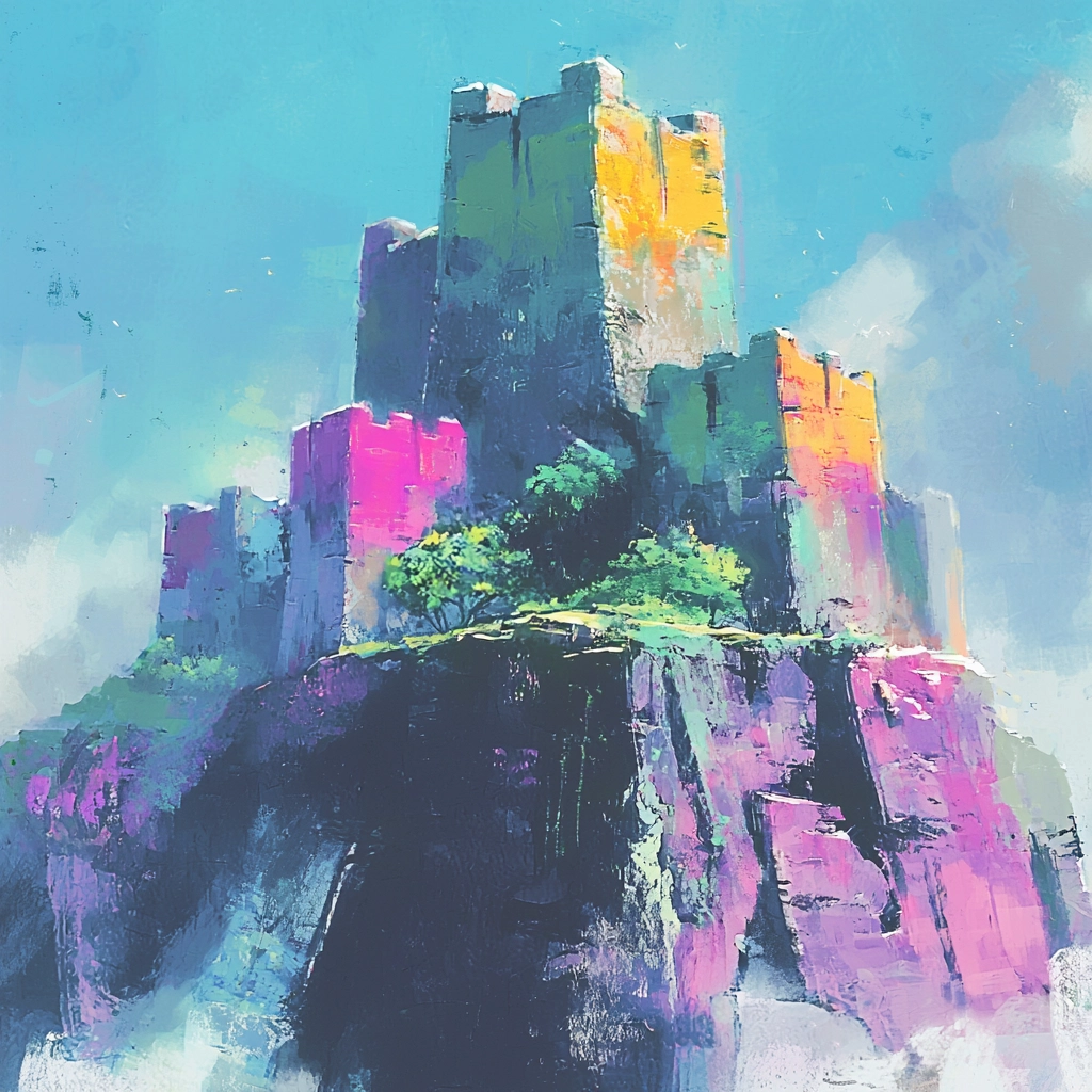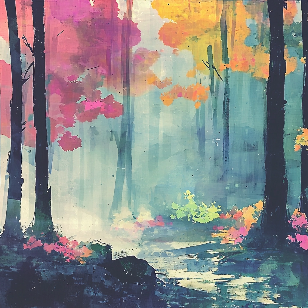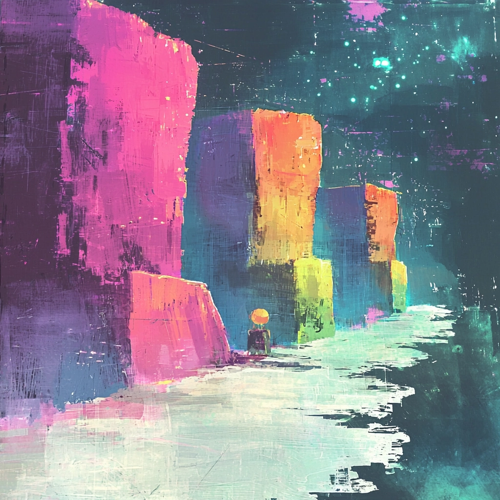 The lighting is dramatic and enhances the vibrant color contrasts, unusually large areas of bright and saturated colors blend together creating a sense of depth. Brush textures are highly pronounced, contributing to a tactile and dynamic effect.