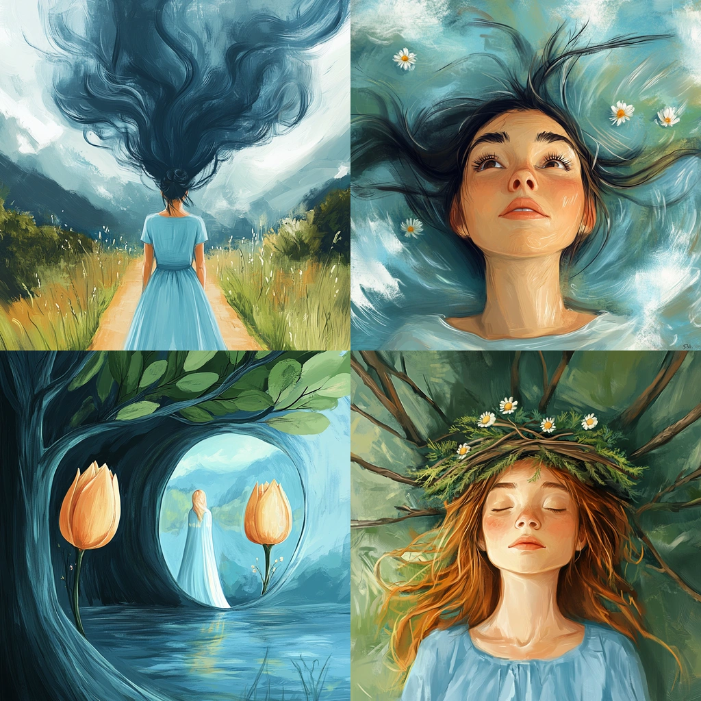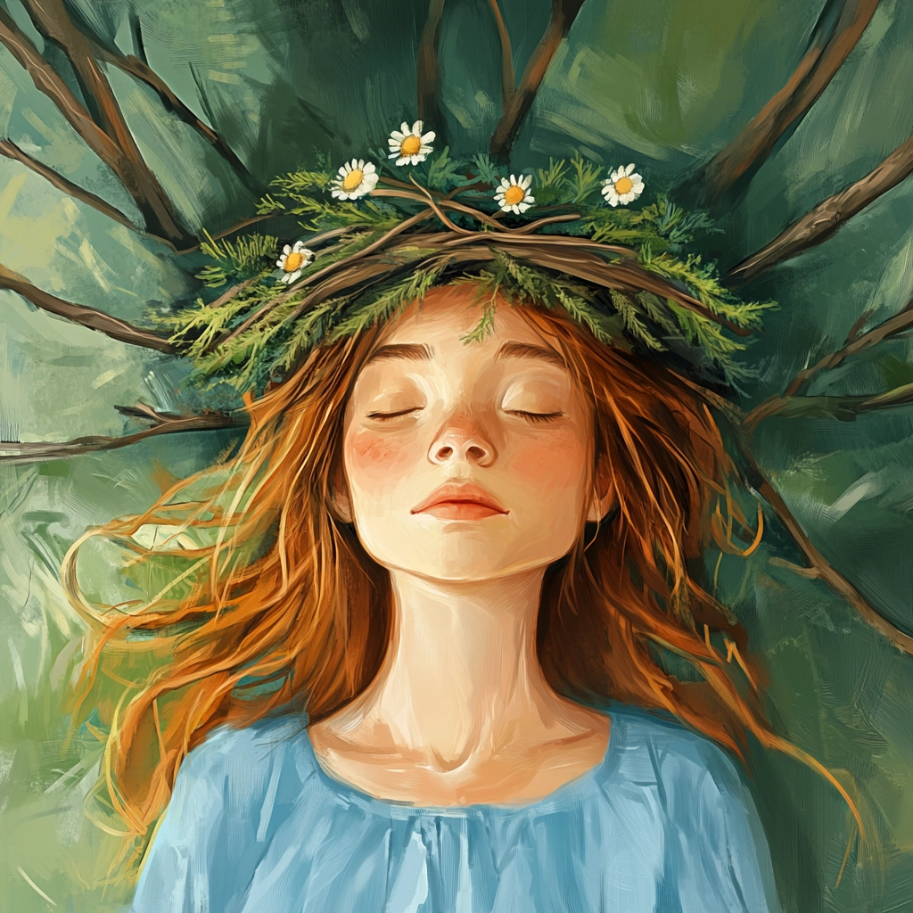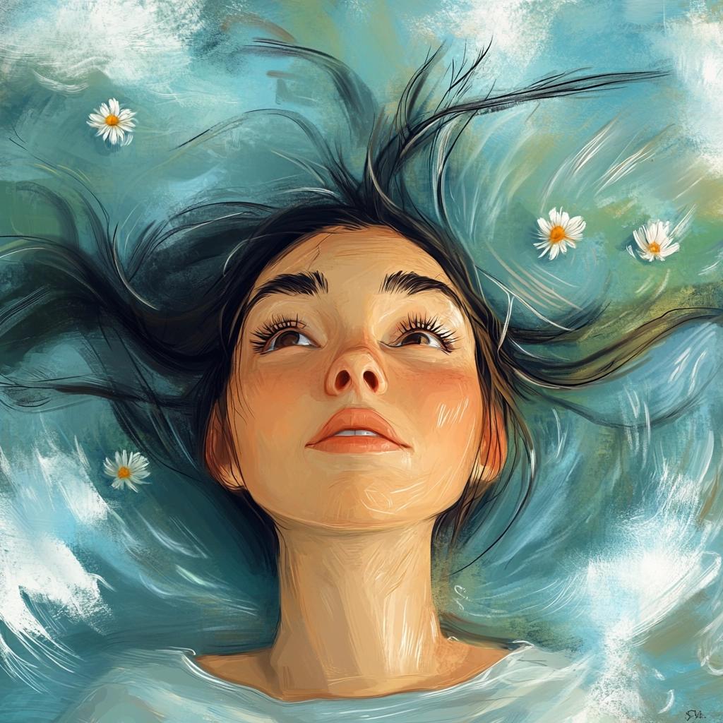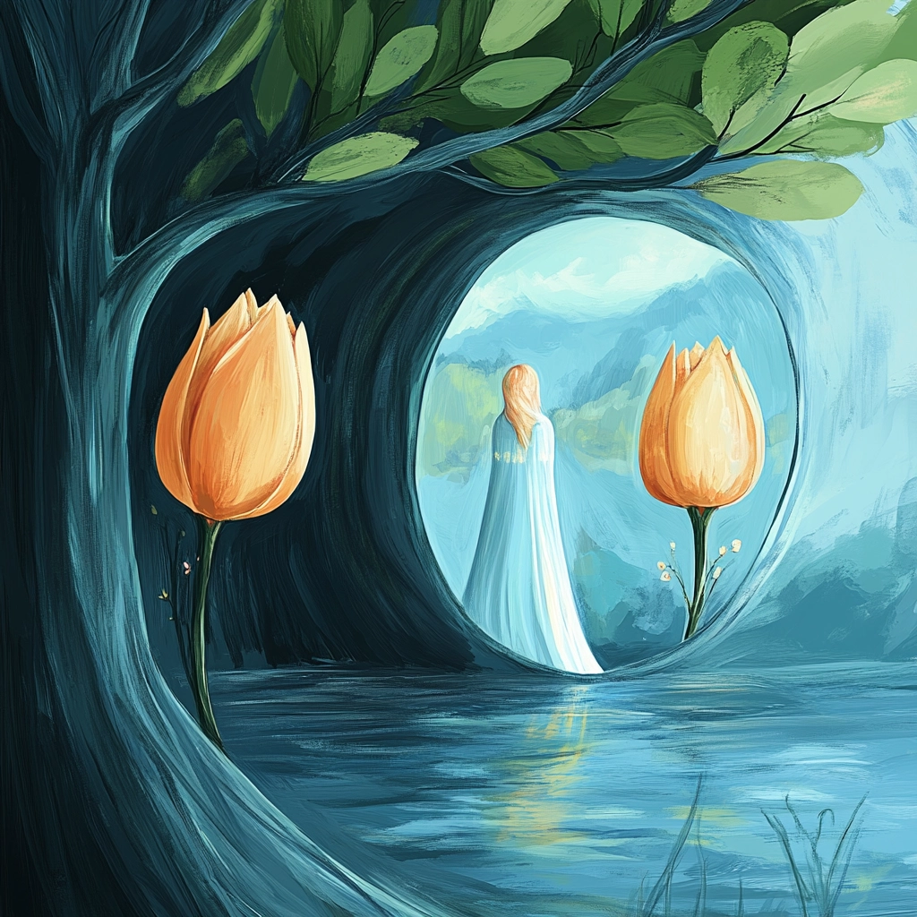 Soft lighting reveals rich colors with fluid brushwork giving a sense of gentle movement. Multiple textures create a layered spatial depth, enhancing the vibrancy.