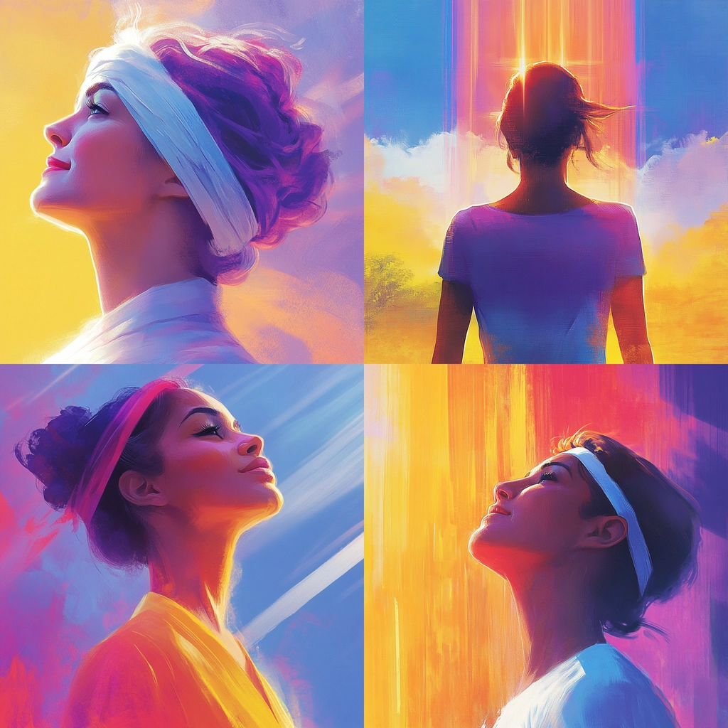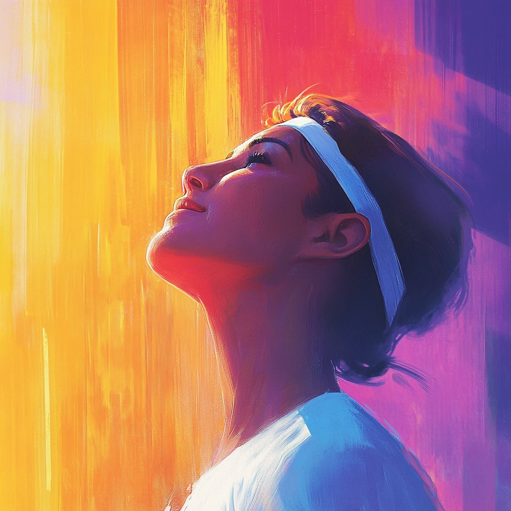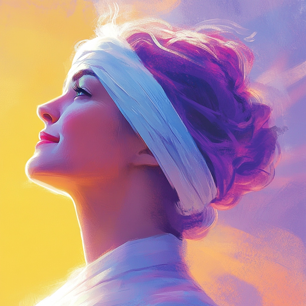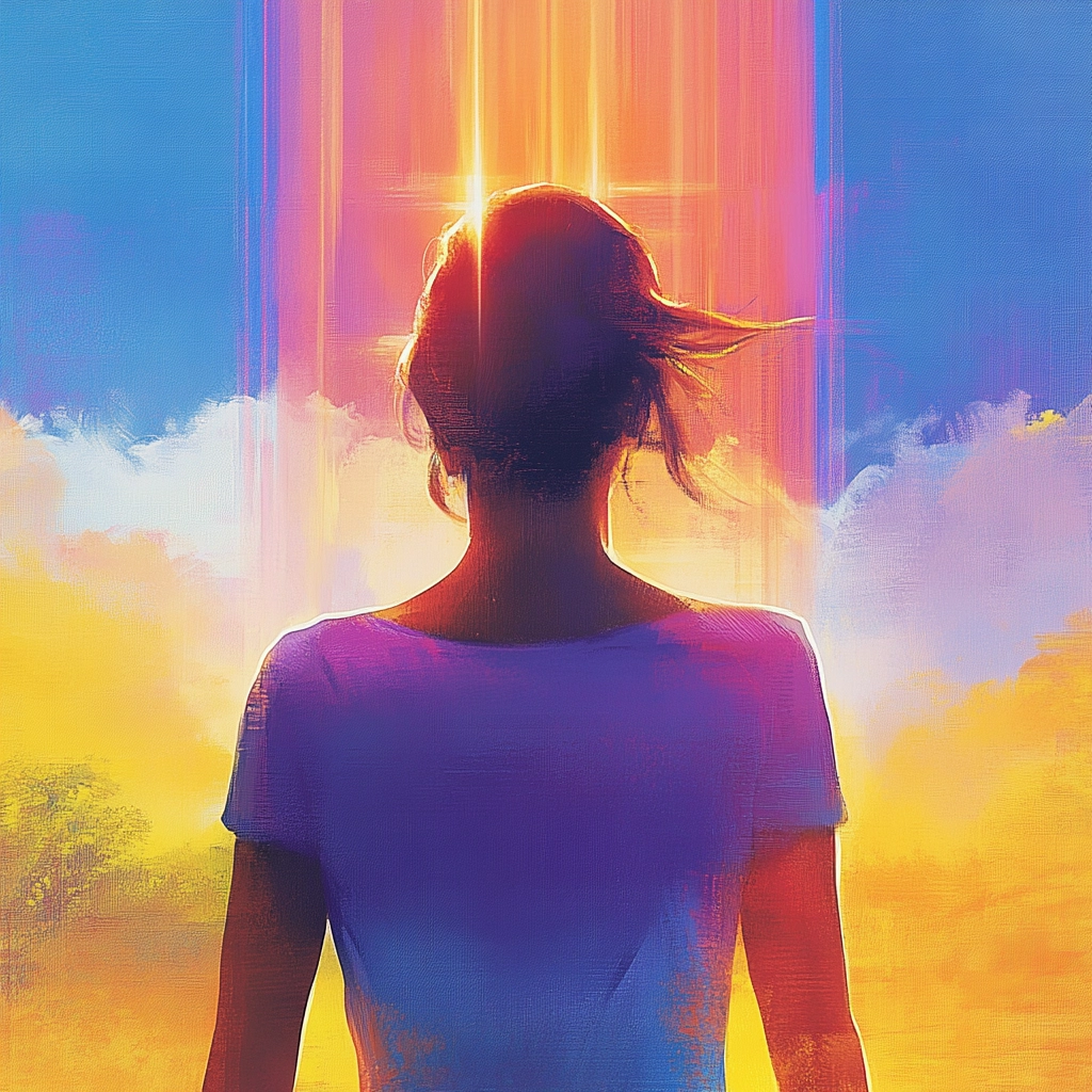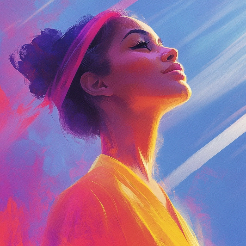 The lighting effects create a sense of enveloping warmth, while the vibrant colors blend smoothly. The play of shadows suggests depth, enhanced by the atmospheric gradient of hues. Brushstrokes display soft, sweeping textures.