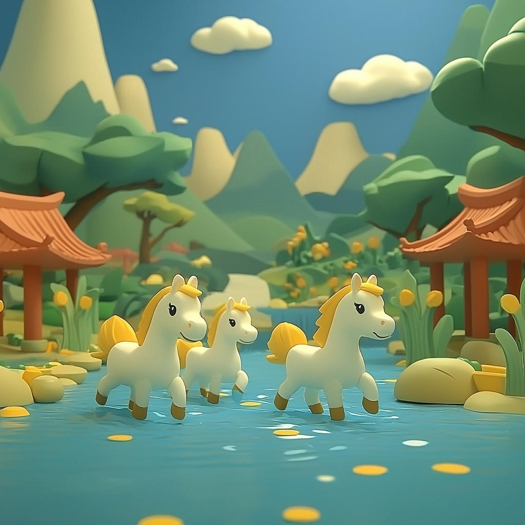 Brightness from warm, soft lighting creates a comforting ambiance. Saturated colors paired with smooth, round textures enhance playful scenes. Depth is achieved via subtle layering of elements.