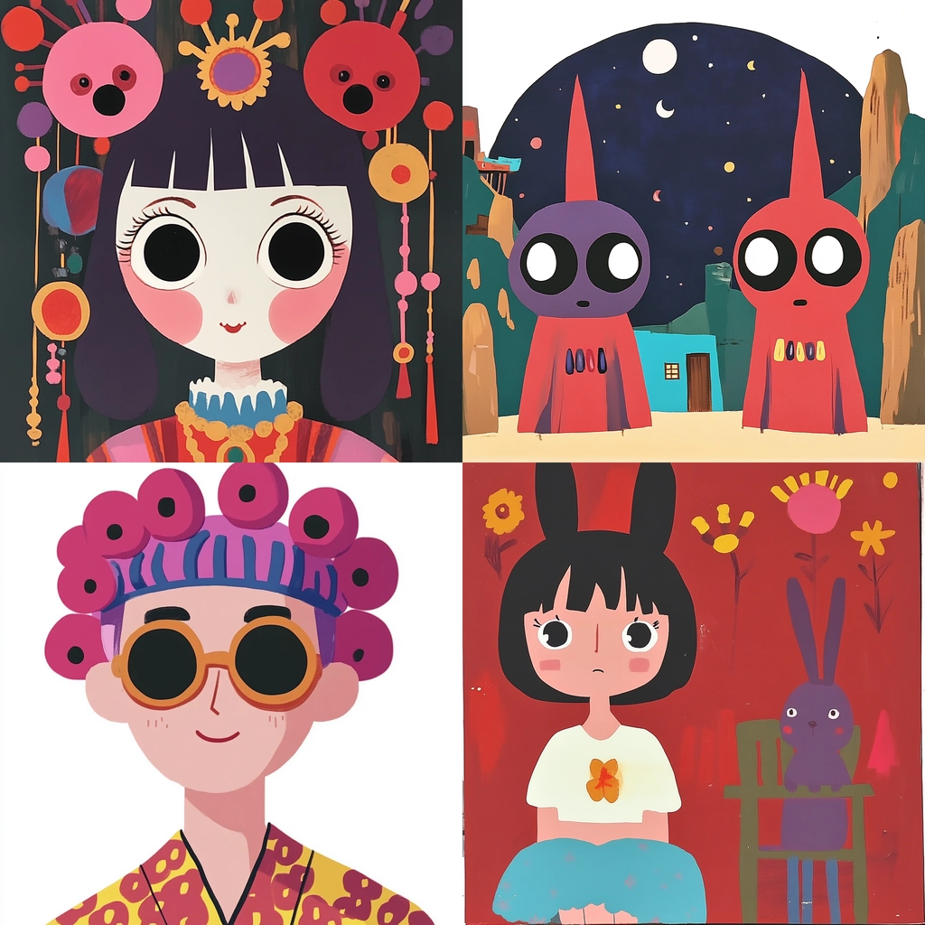 Colorful compositions with defined shapes and contrasting tones.