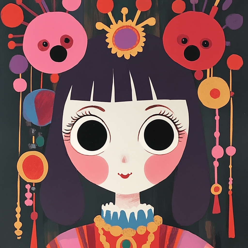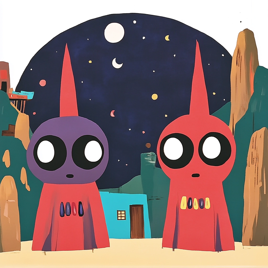 Bright lighting enhances vivid colors with bold contrasts between red, purple, and blue, creating a clear spatial illusion. Textures are smooth and clean, presenting sharp edges to emphasize the playful aesthetics and dynamic visual impact.