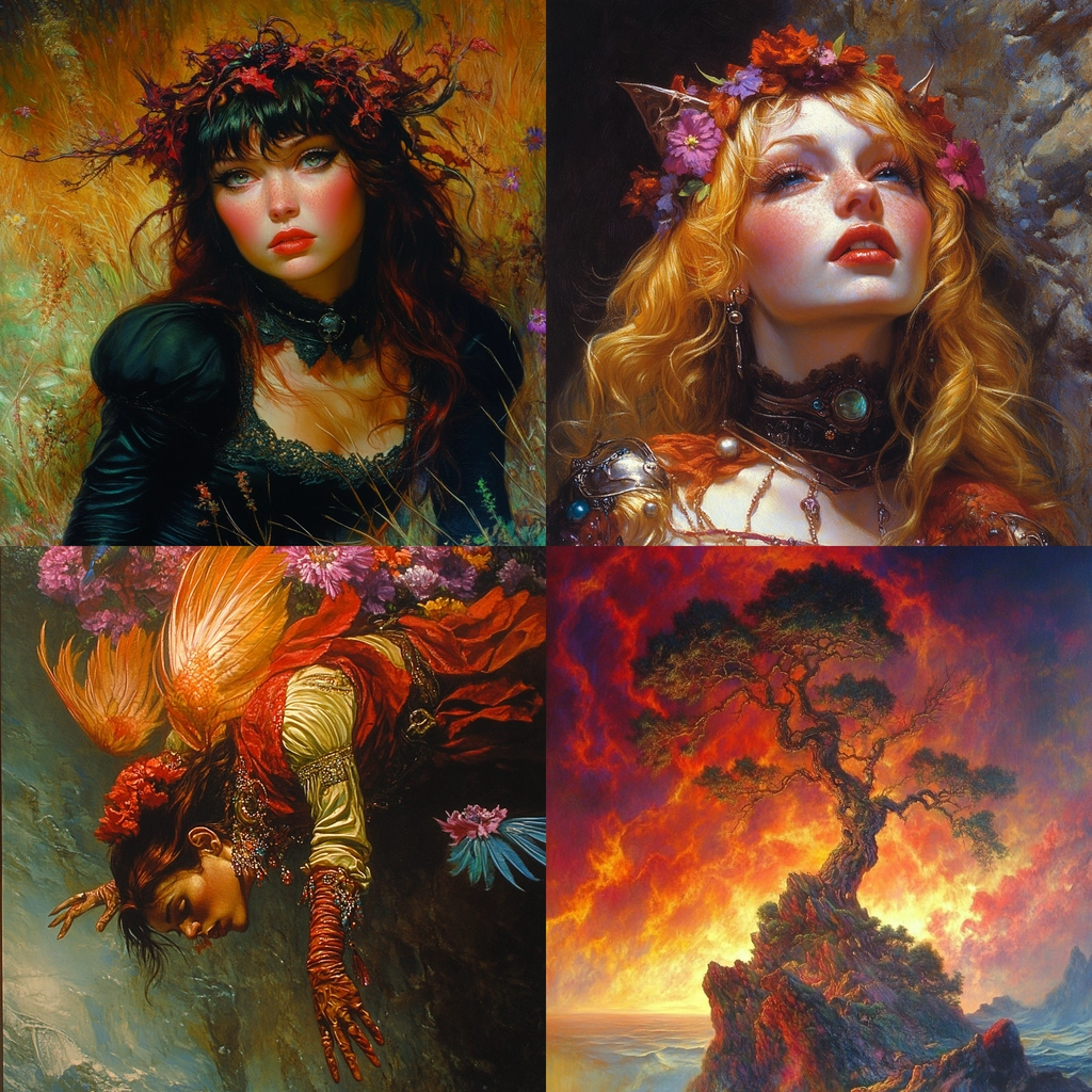 Lighting effects range from soft, natural illumination to dramatic, high-contrast areas, enriching the vivid colors and enhancing the ground. Texture is meticulously detailed, with a mix of smooth gradients and intricate, tactile surfaces, creating a sense of depth and form.