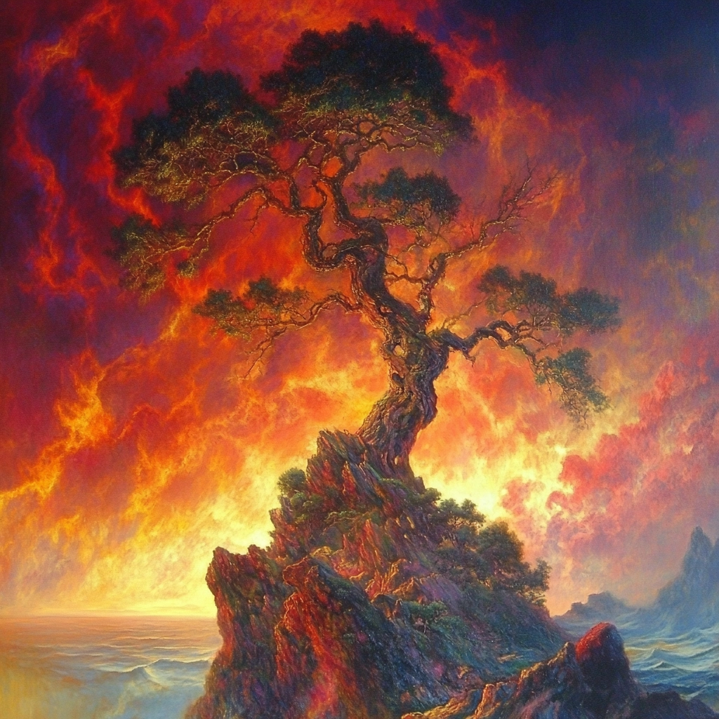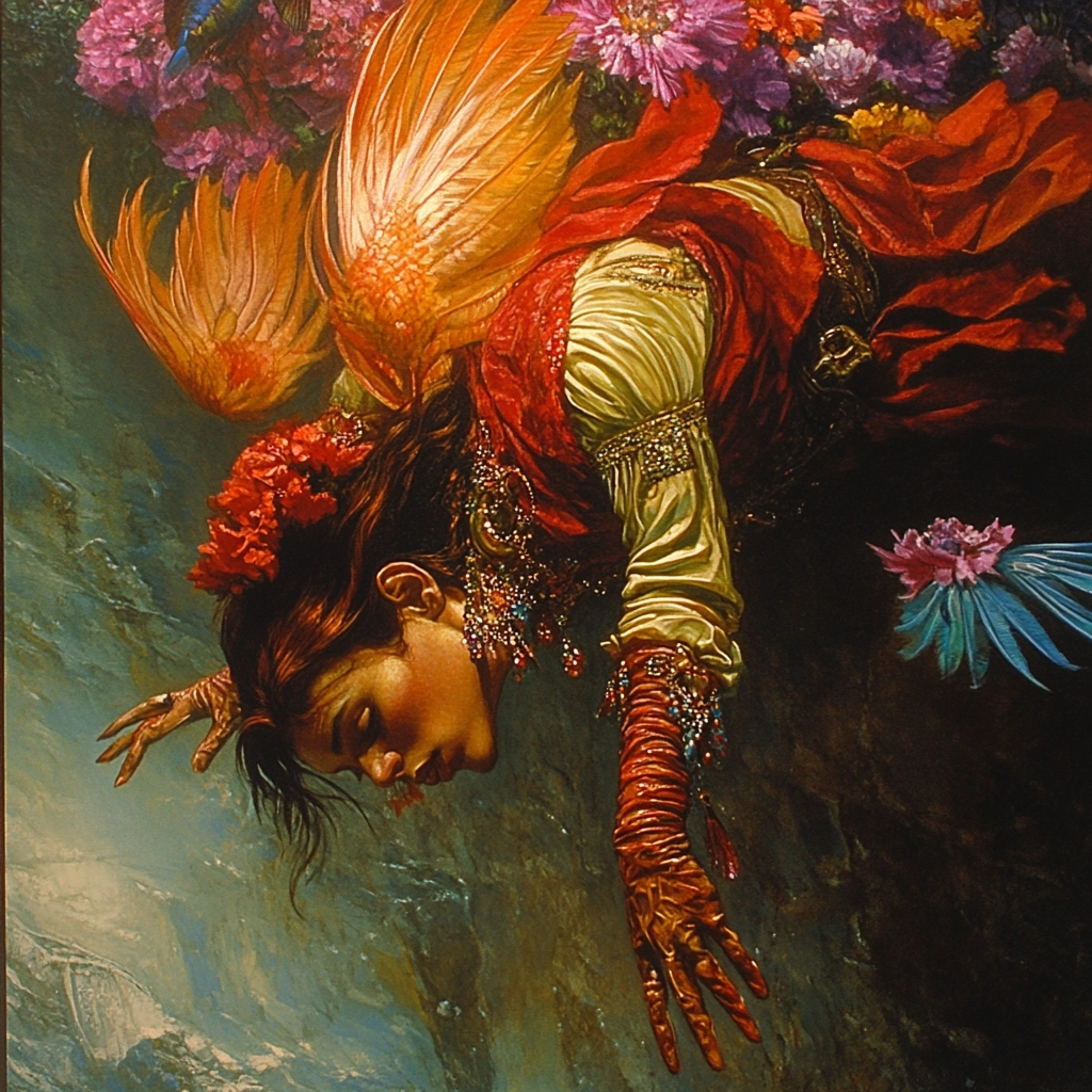 Rich and vibrant colors create a dynamic and intense composition.