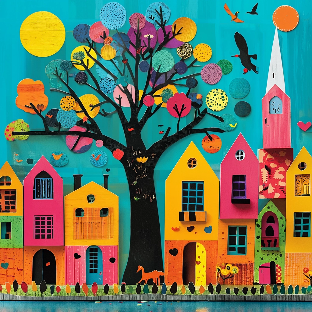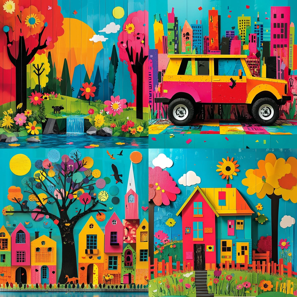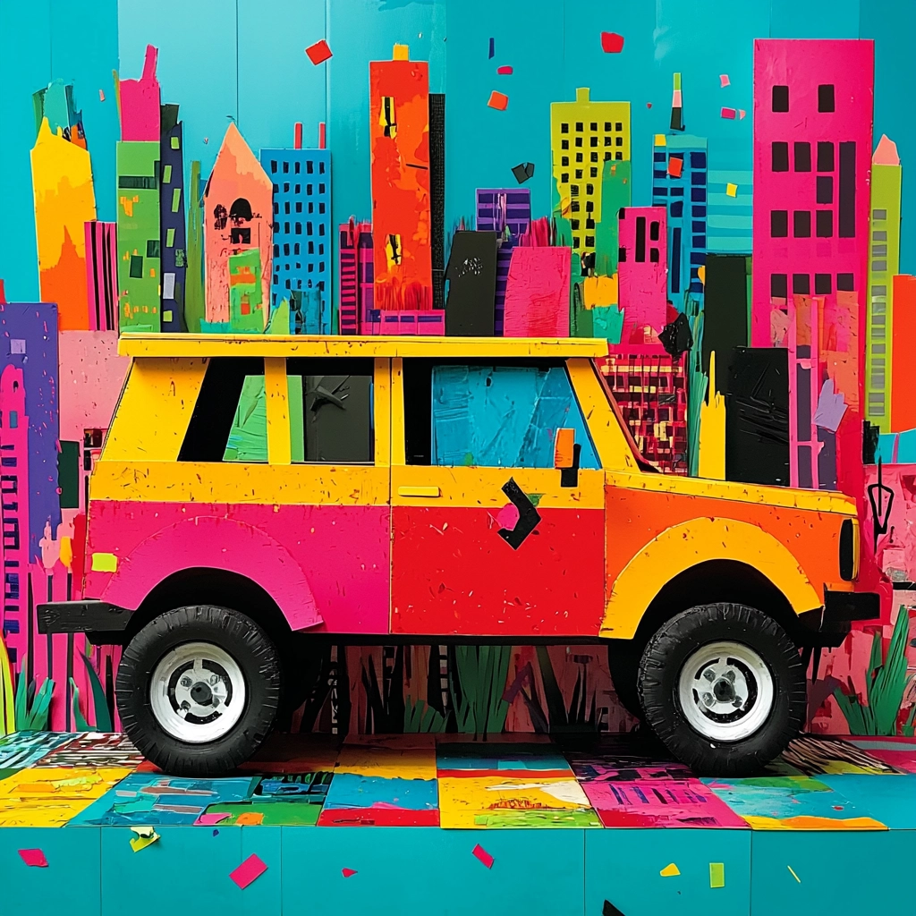 An intense blend of vibrant blocks of color with sharp contrasts and playful geometric structure.