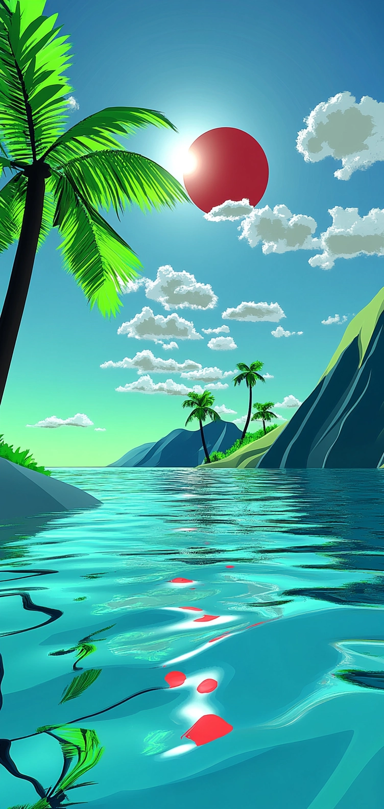 The lighting enhances the vivid colors, creating depth through prominent gradients. The textures are smooth, with a glossy finish and reflective surfaces that add a dynamic spatial sense. Sharp color transitions establish clear visual separation between elements.