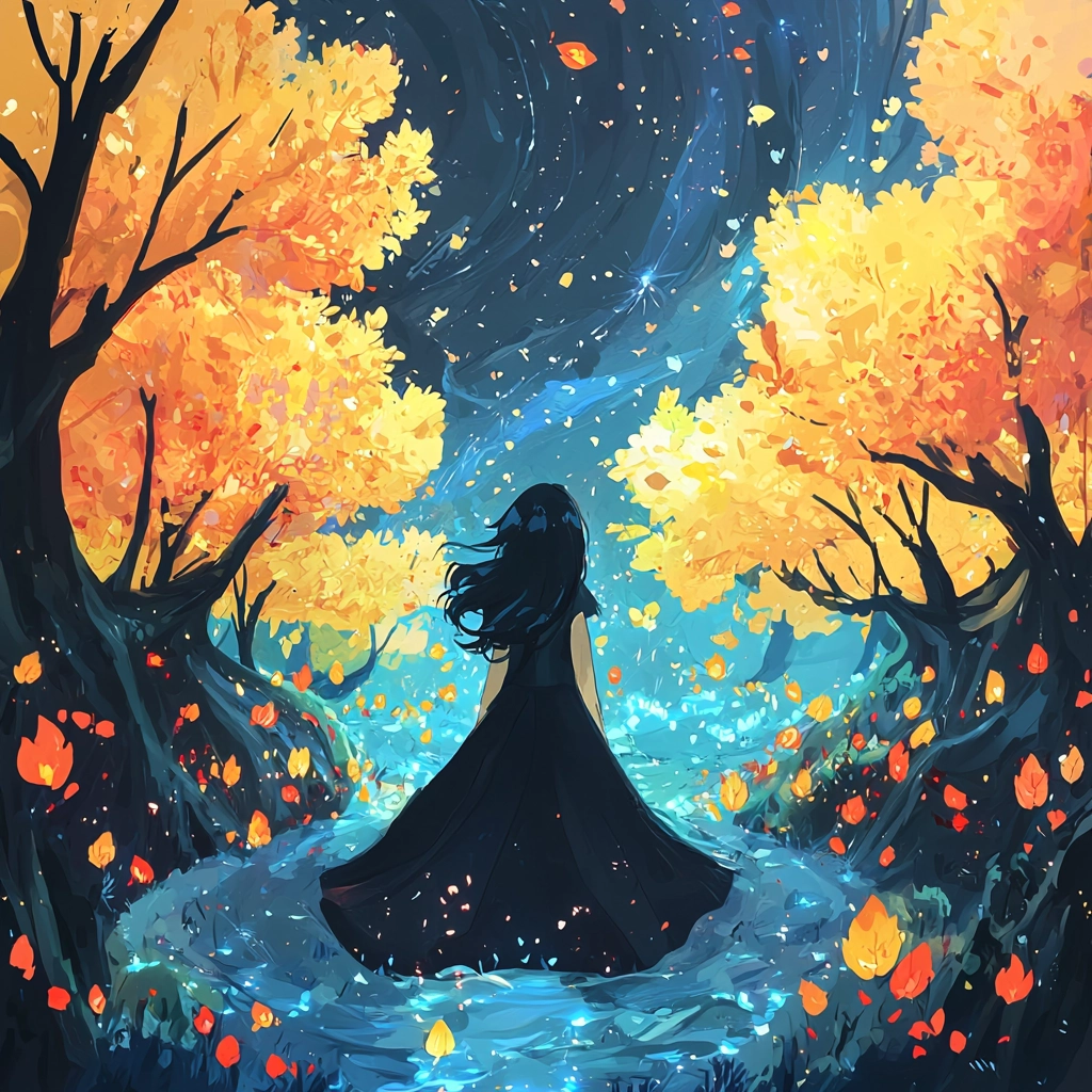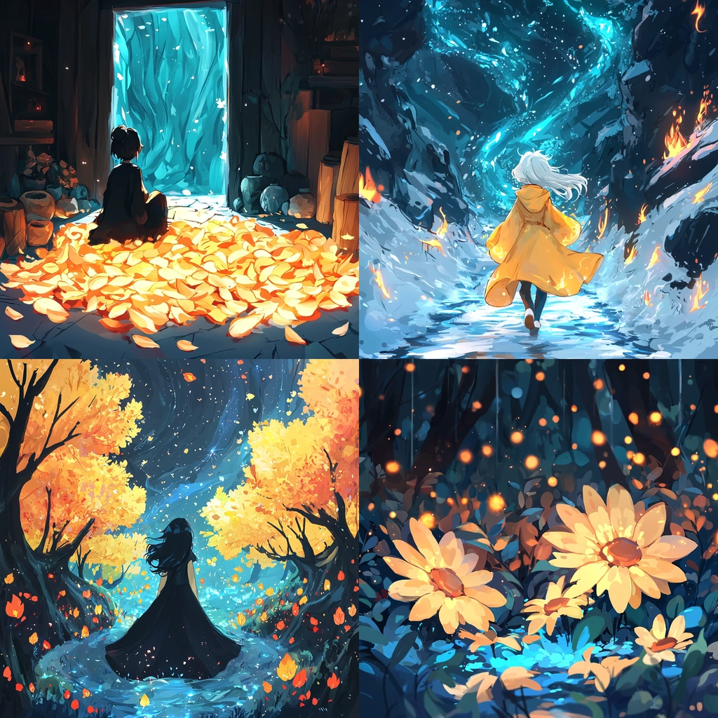 There is a strong interplay between warm and cool tones, creating a vivid lighting effect. The use of texture enhances the sense of movement, while spatial arrangements offer depth and dimension.