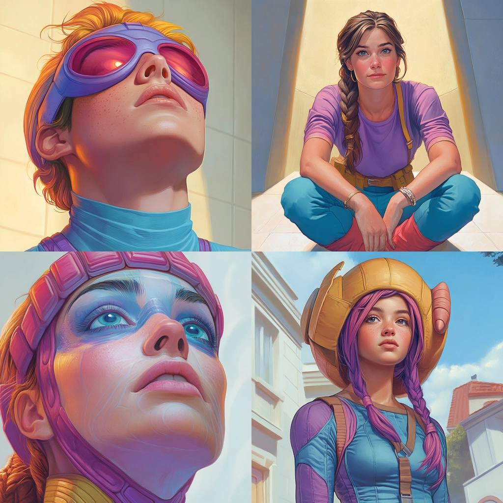 The lighting creates sharp contrasts that highlight a modern aesthetic, with colors blending seamlessly across smooth surfaces. Careful use of vibrant hues adds depth and balance, while textures remain consistent and refined.
