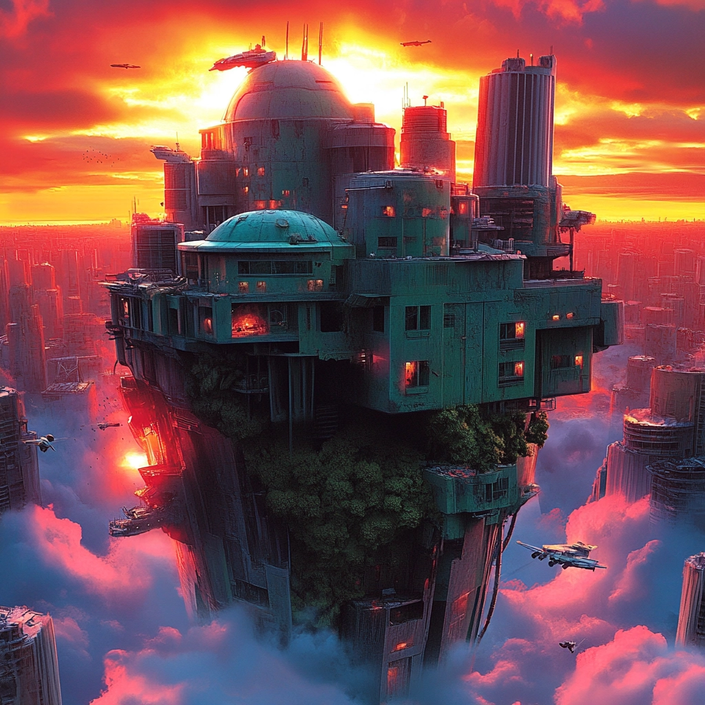 Dynamic compositions blend vivid contrast with futuristic themes.