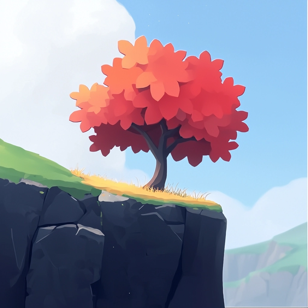 The composition features vibrant colors with defined forms and contrasting hues, adding a striking yet balanced visual appeal.