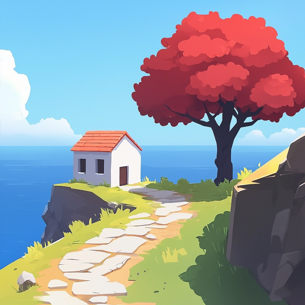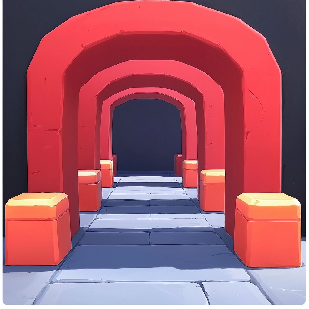 Lighting emphasizes depth with soft shadows casting onto bright surfaces, enhancing dimension. Bold colors create distinct zones with precise boundaries. The texture is smooth, contributing to a cohesive spatial effect and a dynamic yet polished look.