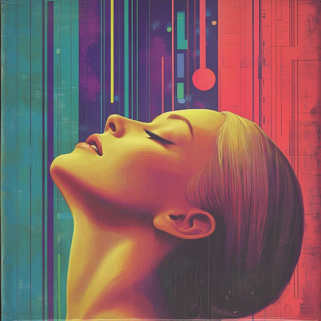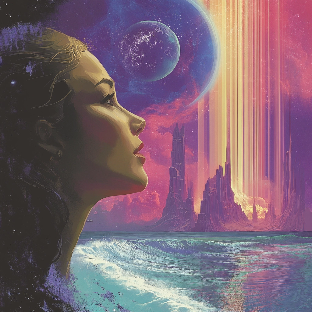 A vivid interplay of bright hues and cosmic motifs enhanced by digital and futuristic elements.