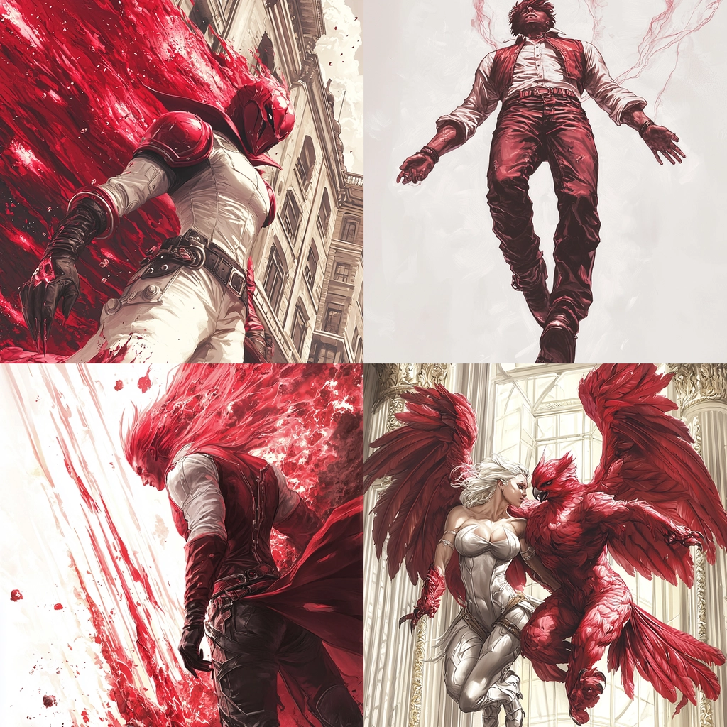 The vivid red paired with white creates a stark contrast, emphasizing dynamic compositions.