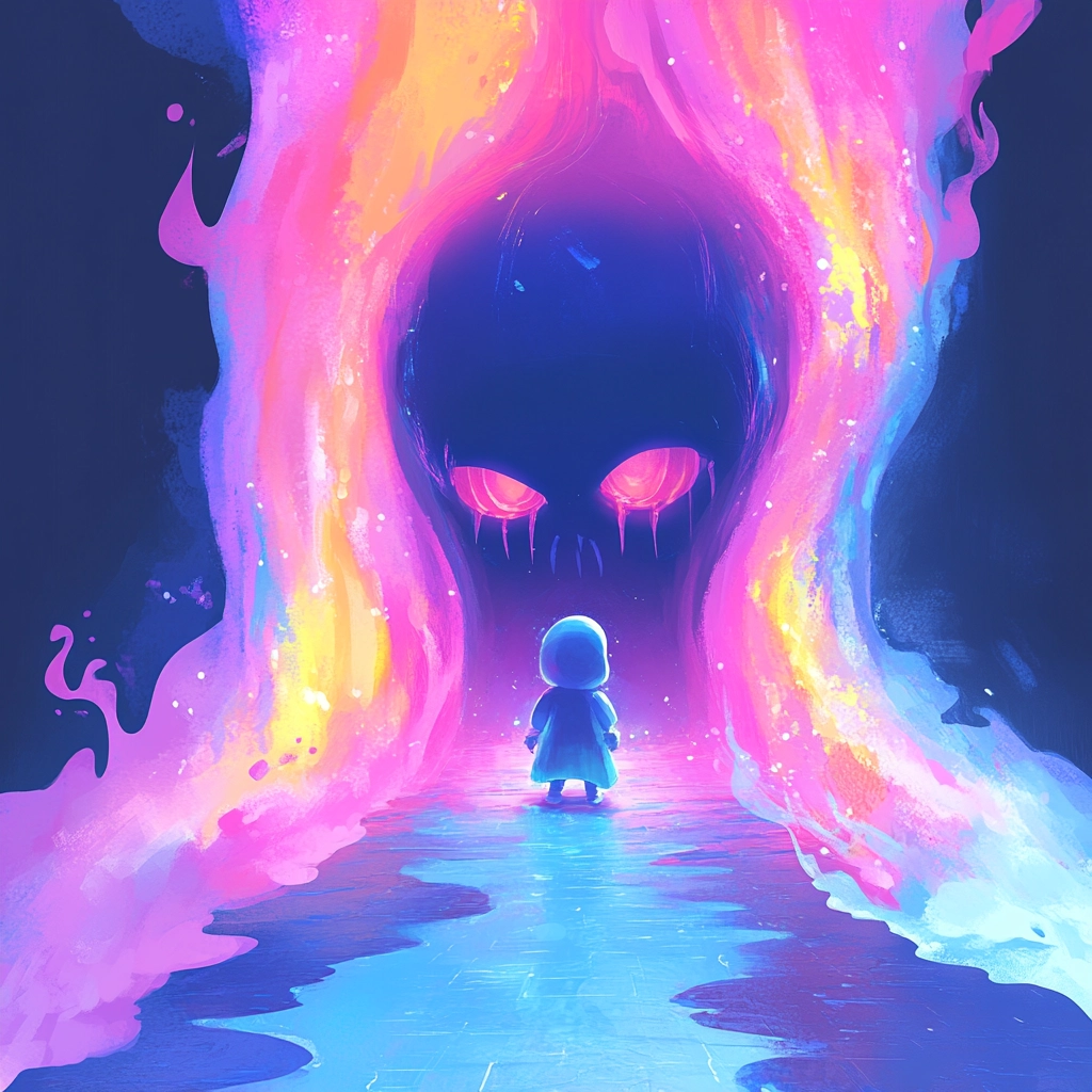 The lighting effects amplify the vivid vibrancy, with intense neon colors sparking visual interest. The pastel hues blend seamlessly, whilst space expands through contrasting textures, enhancing the fantastical appeal. Depth in each scene draws the observer鈥檚 focus.