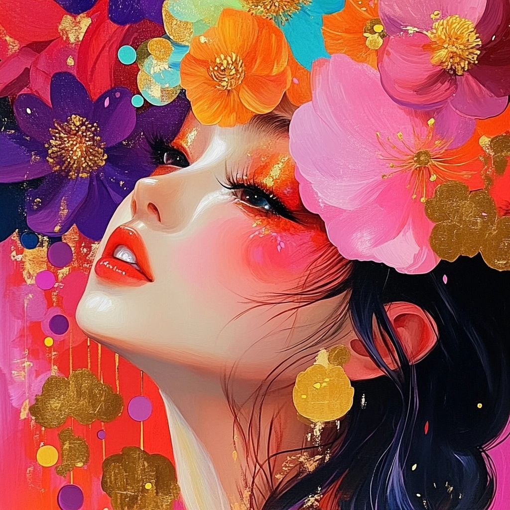 A vibrant interplay of intense hues with harmonious floral accents, creating a striking composition.