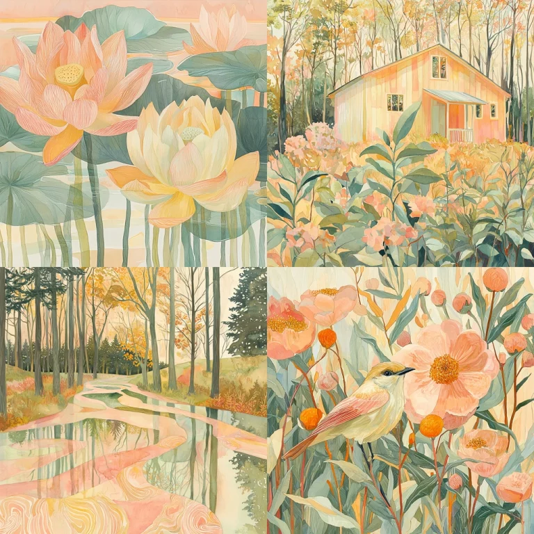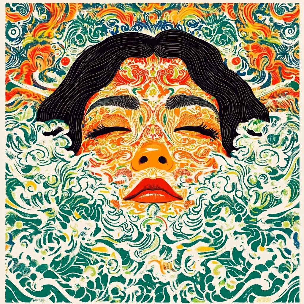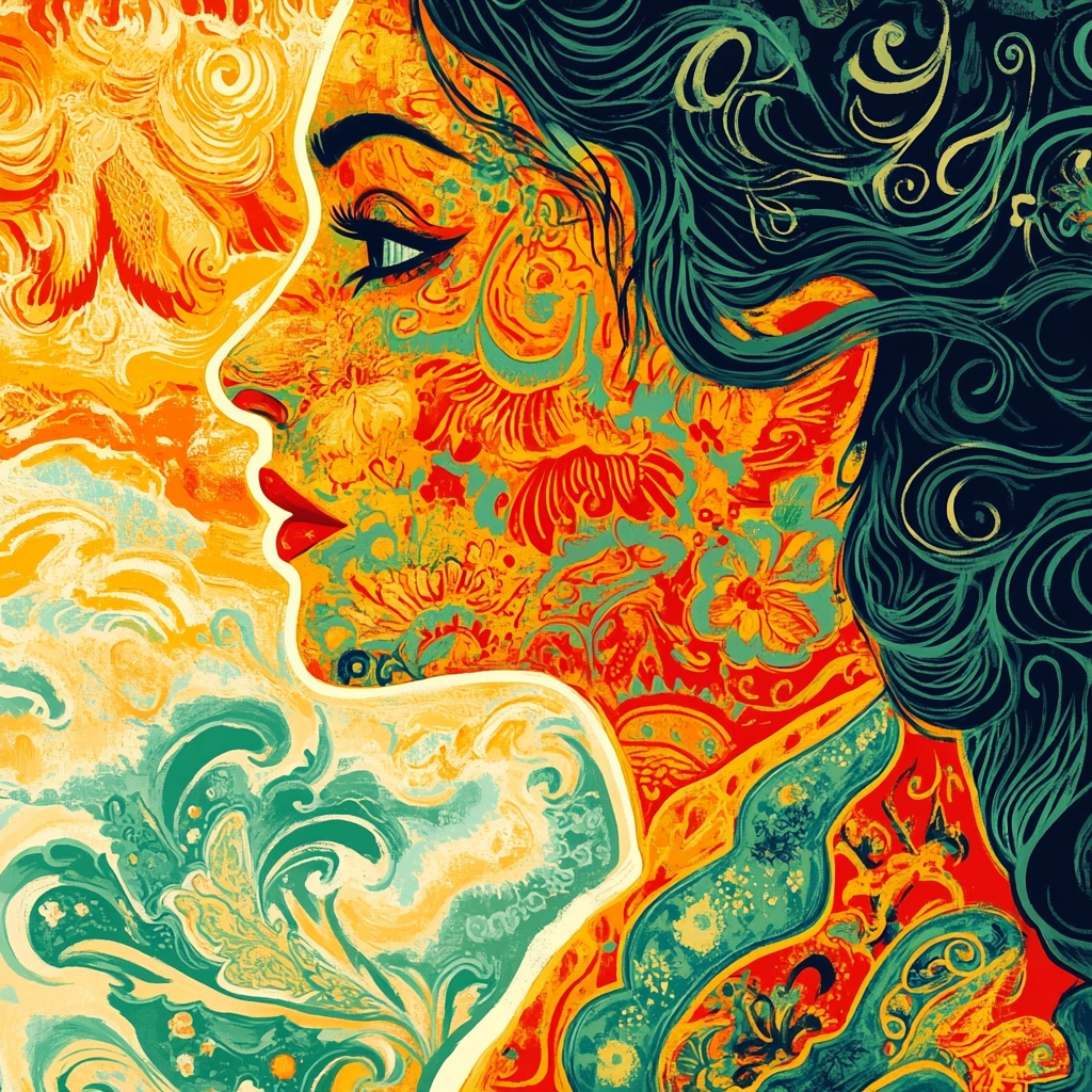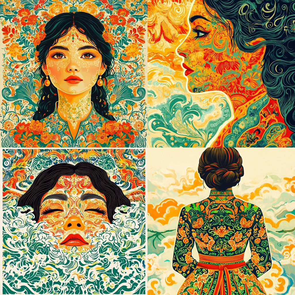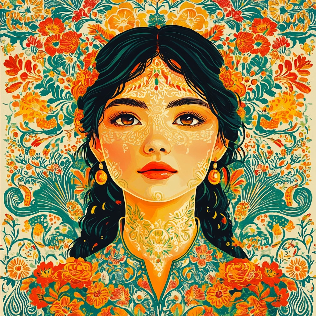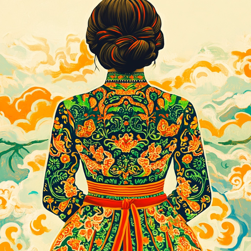 Bright lighting enhances vivid colors and detailed motifs, creating a lively sense of motion. Delicate line work and rich textures convey ornate elegance, shaping a fluid spatial composition.